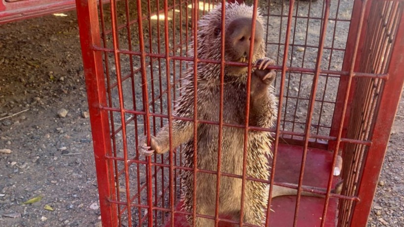 Um “quandu de Baturité”, também conhecido como porco-espinho, foi resgatado, nessa segunda-feira, 24, pelo Corpo de Bombeiros Militar do Ceará (CBMCE) em um imóvel localizado no município de Tauá.