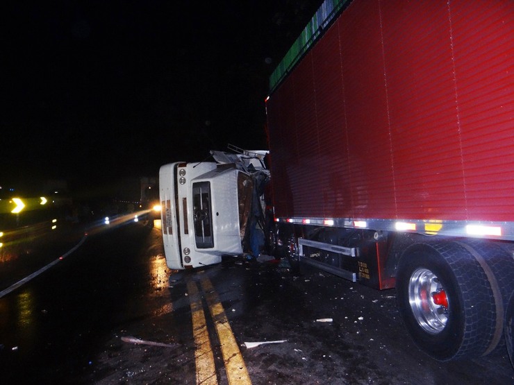 [FOTO1]Dois caminhões colidiram frontalmente e bloquearam um trecho da BR-222, no quilômetro 302, localizado na subida da serra de Tianguá, na noite dessa terça-feira, 7.