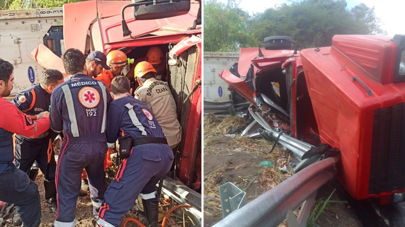 Um motorista foi resgatada na manhã desta sexta-feira, 20, após ficar presa nas ferragens de um caminhão que tombou enquanto descia uma serra na BR-222, na altura do município de Tianguá, a 318,68 km de Fortaleza.