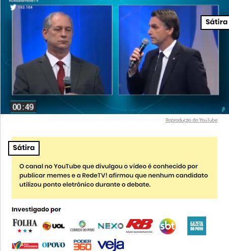 O Comprova entrou em contato com a RedeTV! e com a assessoria de imprensa de Jair Bolsonaro. A rede de televisão afirmou que não tem relação com nenhum dos vídeos que foram compartilhados nem os autorizou. Também disse que nenhum candidato utilizou ponto eletrônico durante o debate. A assessoria de Bolsonaro limitou-se a dizer que isso se tratava de algo “fake".
