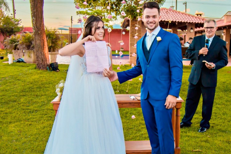 “Eu havia deixado tudo combinado com meu pai. Então eu perguntei se alguém tinha uma caneta. Nesse momento, meu pai foi no altar e me entregou a caneta e o contrato. Foi quando eu falei: ‘antes da gente se casar, o Lucas falou que se eu casasse com ele, ele lavaria a louça todos os dias. Aqui está o contrato’”, disse Jaqueline.