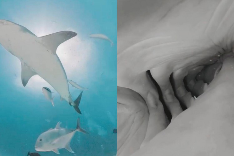 Tubarão-tigre tenta engolir câmera 360º; veja imagens dentro da boca do animal
