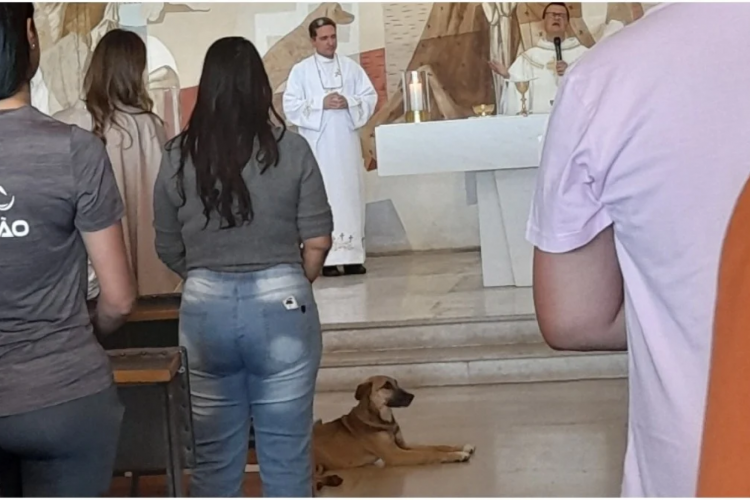 A missa dominical da Igreja São Francisco de Assis, na Pampulha, recebeu um visitante ilustre na manhã do último domingo, 6. Durante a cerimônia, um vira-lata caramelo entrou no local, caminhou até o altar e se deitou em frente a uma obra de Cândido Portinari, na qual há um cachorro pintado no painel da igreja.