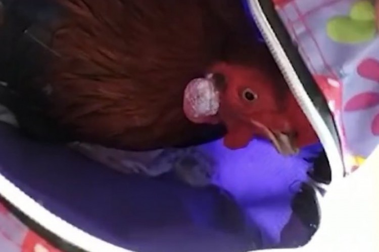 A pequena de 3 anos levou o galo escondido na mochila para a creche. Ela disse que era uma surpresa para a professora. Veja vídeo: