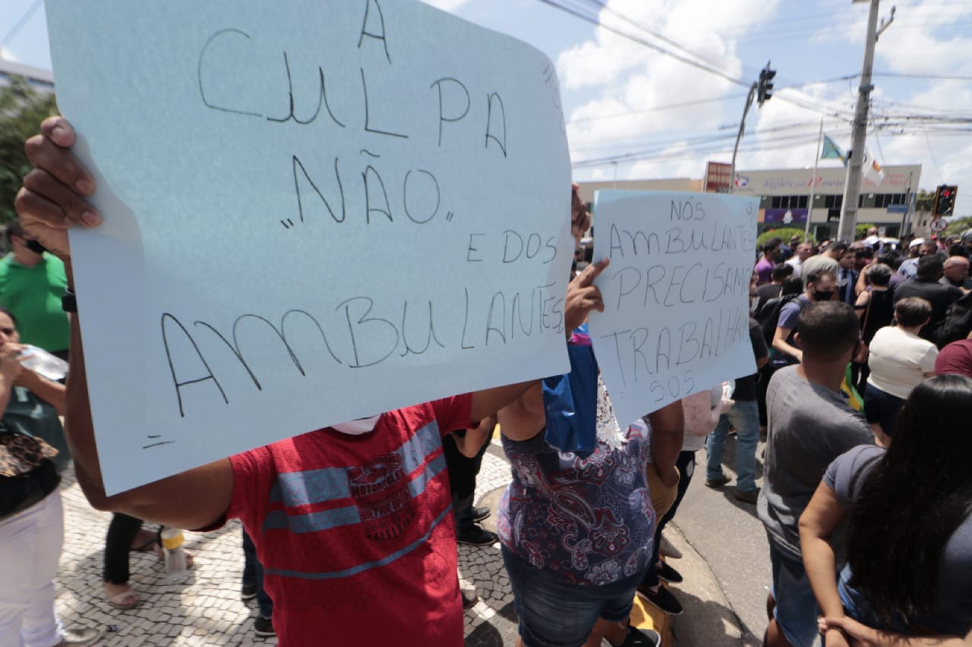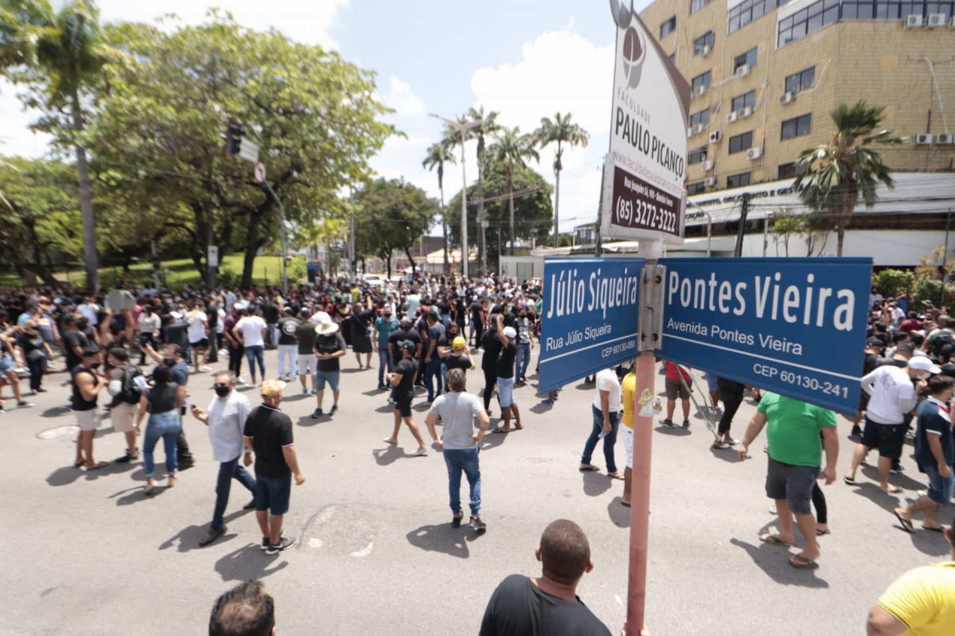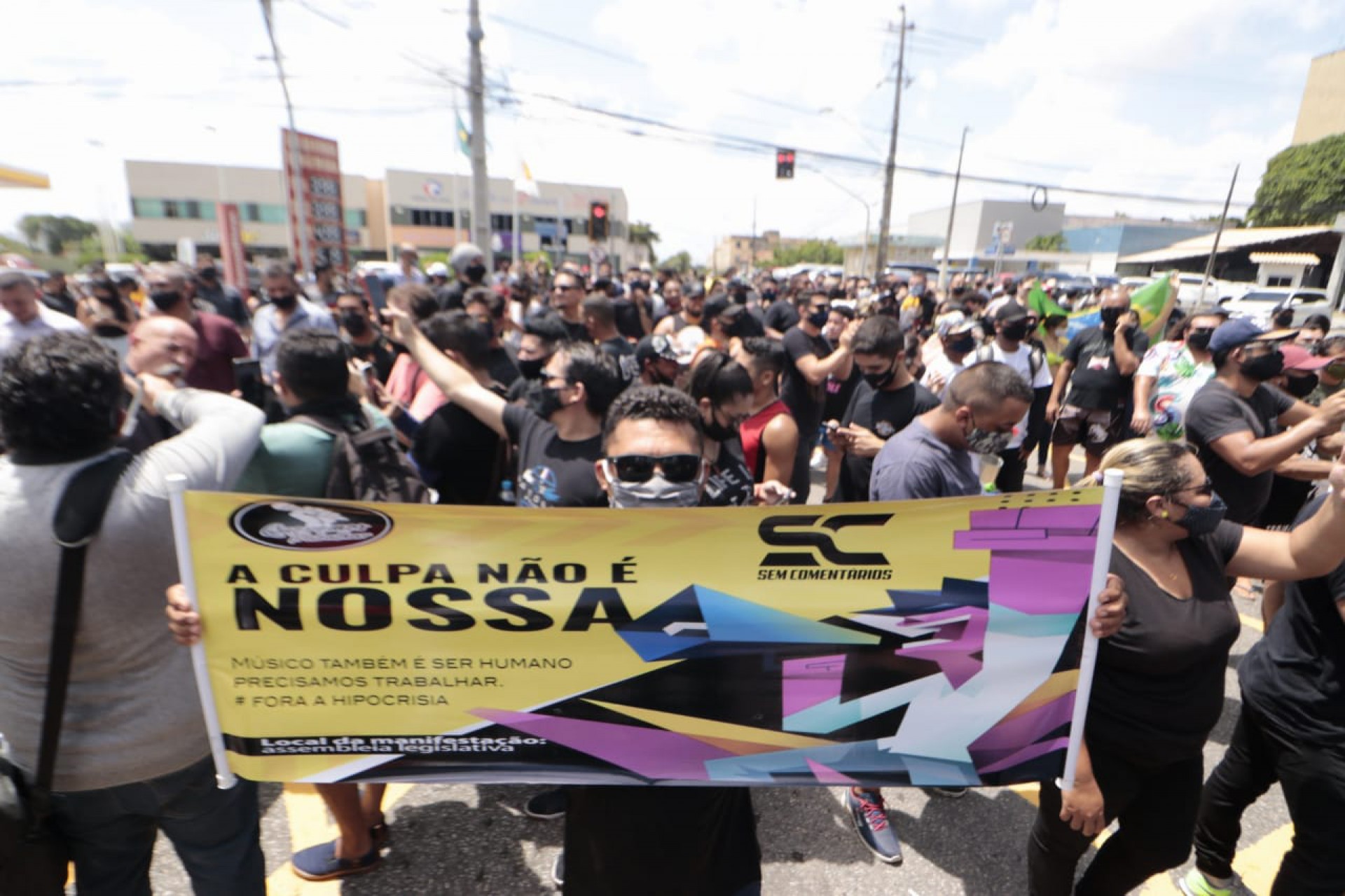 Um dia após o novo decreto de isolamento social entrar em vigor em Fortaleza, integrantes do setor de alimentação realizam protesto em frente à Assembleia Legislativa do Ceará contra a medida que reduziu os horários de funcionamento de bares, restaurantes e barracas de praia na Capital. A medida foi tomada diante do aumento expressivo de casos de Covid-19. O protesto conta com forte articulação da Associação Brasileira de Bares e Restaurantes do Ceará (Abrasel-CE).