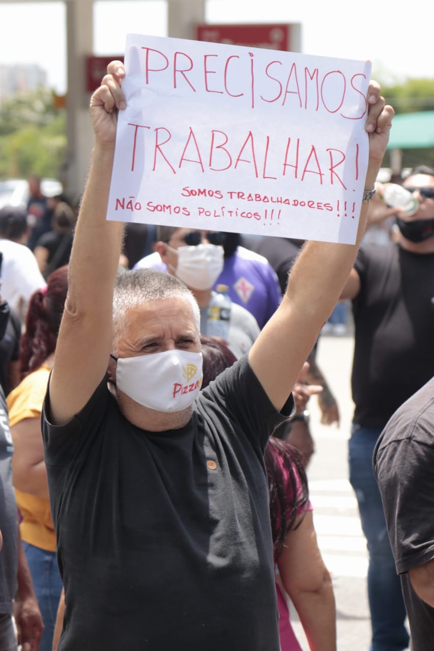 Taiene Rightto, presidente da Abrasel, explicou a motivação da manifestação. "Todo mundo aqui precisa trabalhara, então está todo mundo aqui pedindo o direito de trabalhar para poder sustentar nossas famílias". Para o representante, a medida motiva o trabalho informal: "Deixar a informalidade tomar conta dos espaços não é plausível, a gente precisa trabalhar direito".