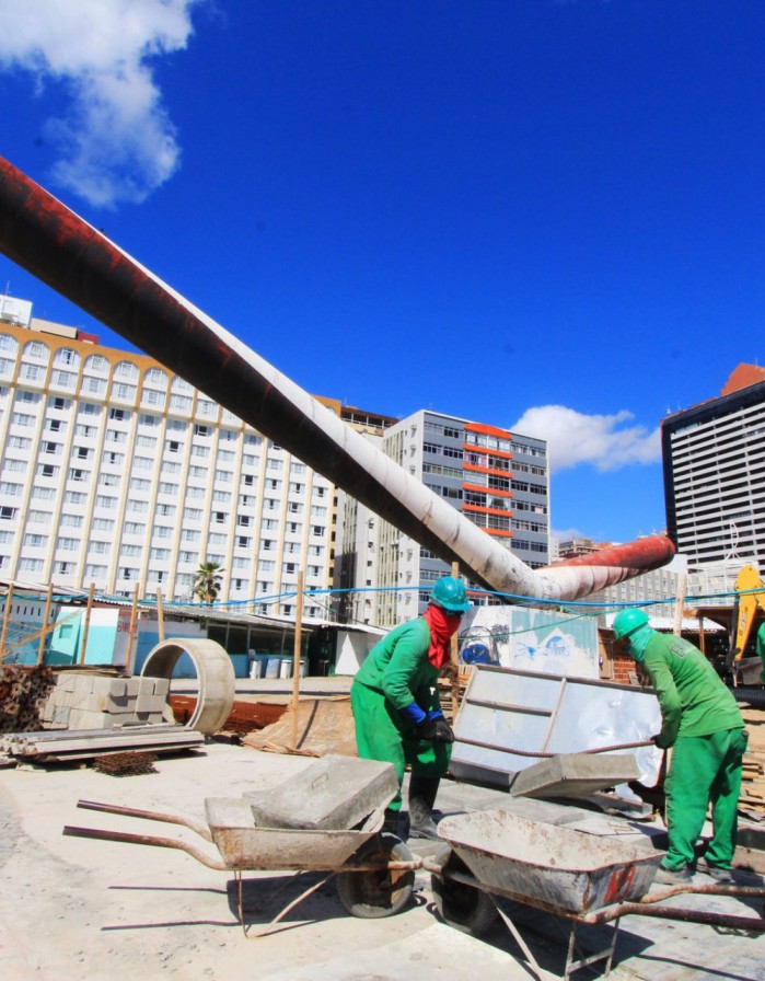 A obra faz parte do projeto de revitalização da Beira Mar de Fortaleza, que estava previsto para ser entregue em junho, mas teve o cronograma adiado para o fim do segundo semestre. Apesar de boa parte do espaço já estar disponível para uso da população, itens como tapumes e máquinas pesadas, além de grandes montes de areia, ainda fazem parte do cenário de um dos principais pontos turísticos da Capital.