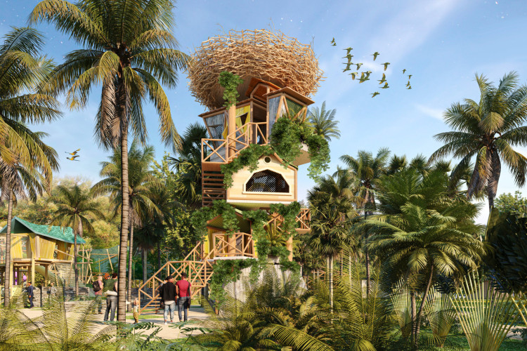 "Ponto central do Arvorar, a torre em formato de ninho de pássaro, onde cada um de seus quatro andares contará curiosidades sobre nossa fauna e flora, dará uma visão 360 graus do parque e dos seus arredores".