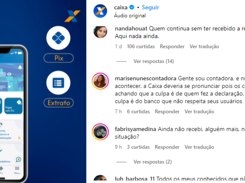 Nas redes sociais, contribuintes se queixam da demora. Um dos usuários postou no perfil da Caixa o seguinte questionamento: "Cadê meu Pix da restituição do imposto de renda????".
