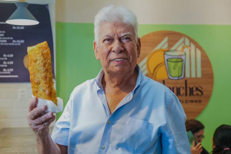 Aos 85 anos, um dos fundadores do Maraponga Mart Moda, Manoel Holanda, conseguiu realizar o sonho de abrir uma pastelaria com caldo de cana.