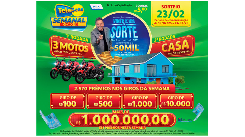 Tele Sena Semanal: 40º sorteio hoje (23/02/25); mais de R$ 1 milhão em prêmios
