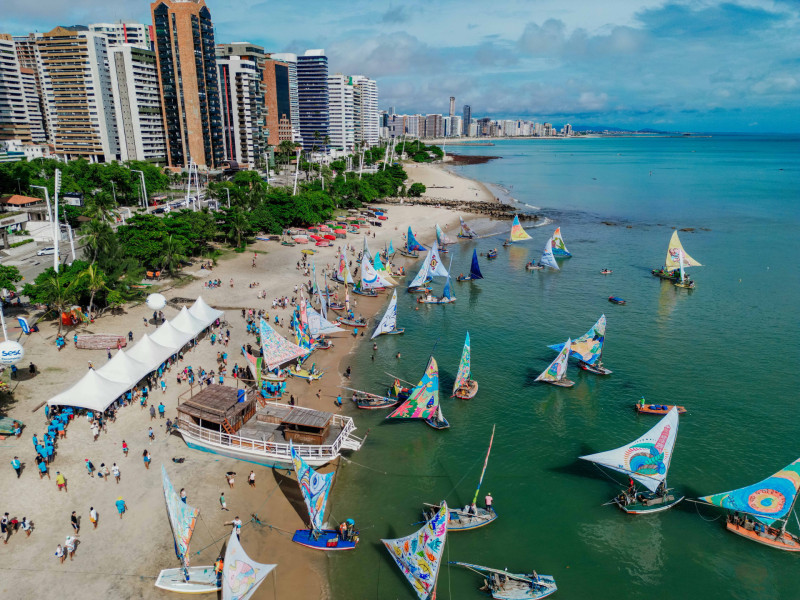 O espetáculo visual seguiu por toda a orla de Fortaleza, promovendo o encantamento do público e a valorização da cultura jangadeira. Confira as fotos