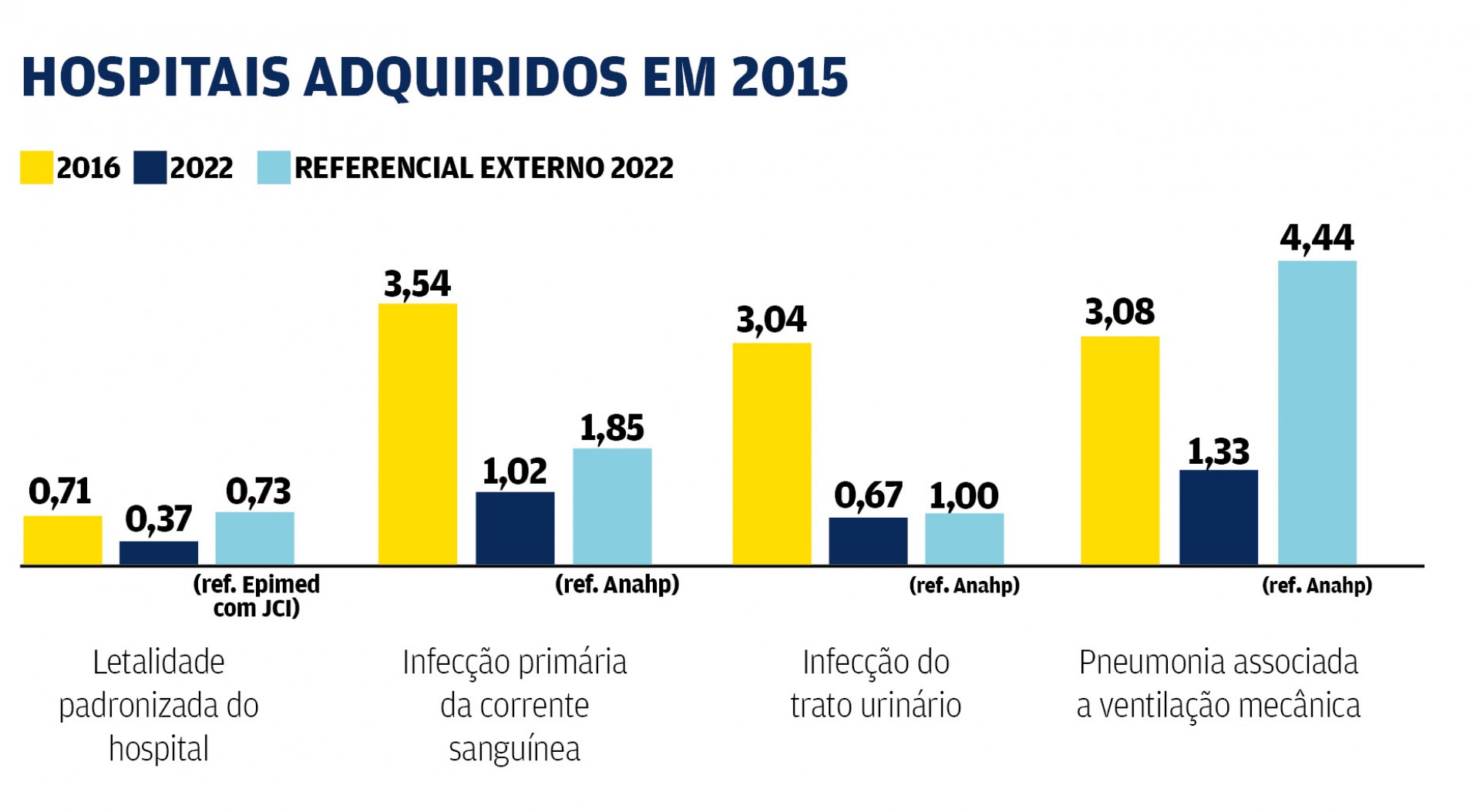 Os resultados são comparados com bases de dados públicos. Uma delas é a da Associação Nacional dos Hospitais Privados (Anahp), que reúne os principais hospitais privados do País. Outra é fornecida pela Amib e Epimed, que monitoram a performance de UTIs.