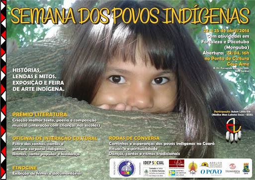 Em virtude do Dia do Índio, celebrado em 19 de abril, o Movimento Saúde Mental Comunitária (MSMC) e parceiros realizam a "Semana dos Povos Indígenas", com programação na sede do movimento, no Bom Jardim, e nas aldeias Pitaguary dos municípios de Maracanaú e Pacatuba, de 22 a 25 de abril. Toda a programação é gratuita e aberta ao público.