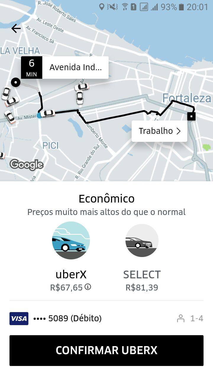 Outro usuário relatou situação ainda mais grave: uma corrida, que em outros dias custava aproximadamente R$ 28, hoje, em simulação, estava custando R$ 84.