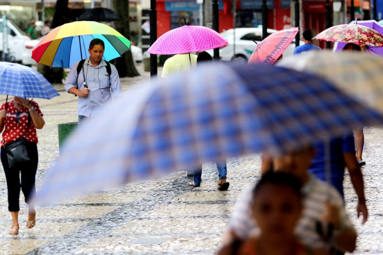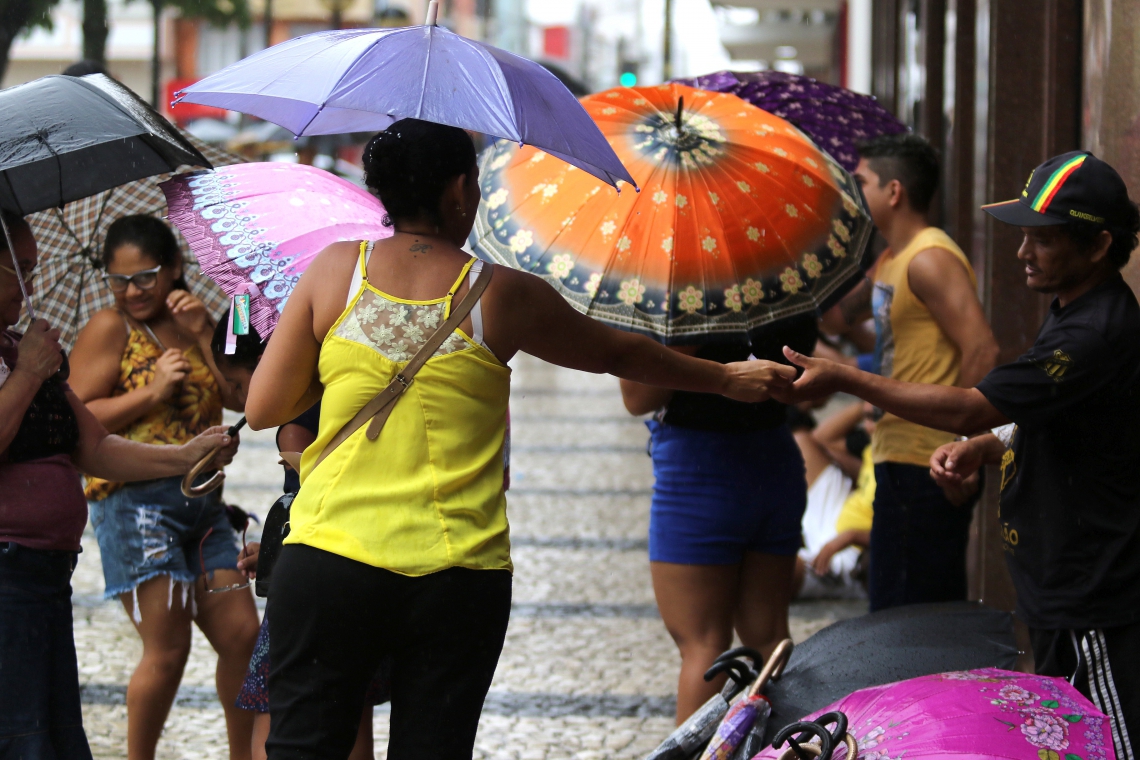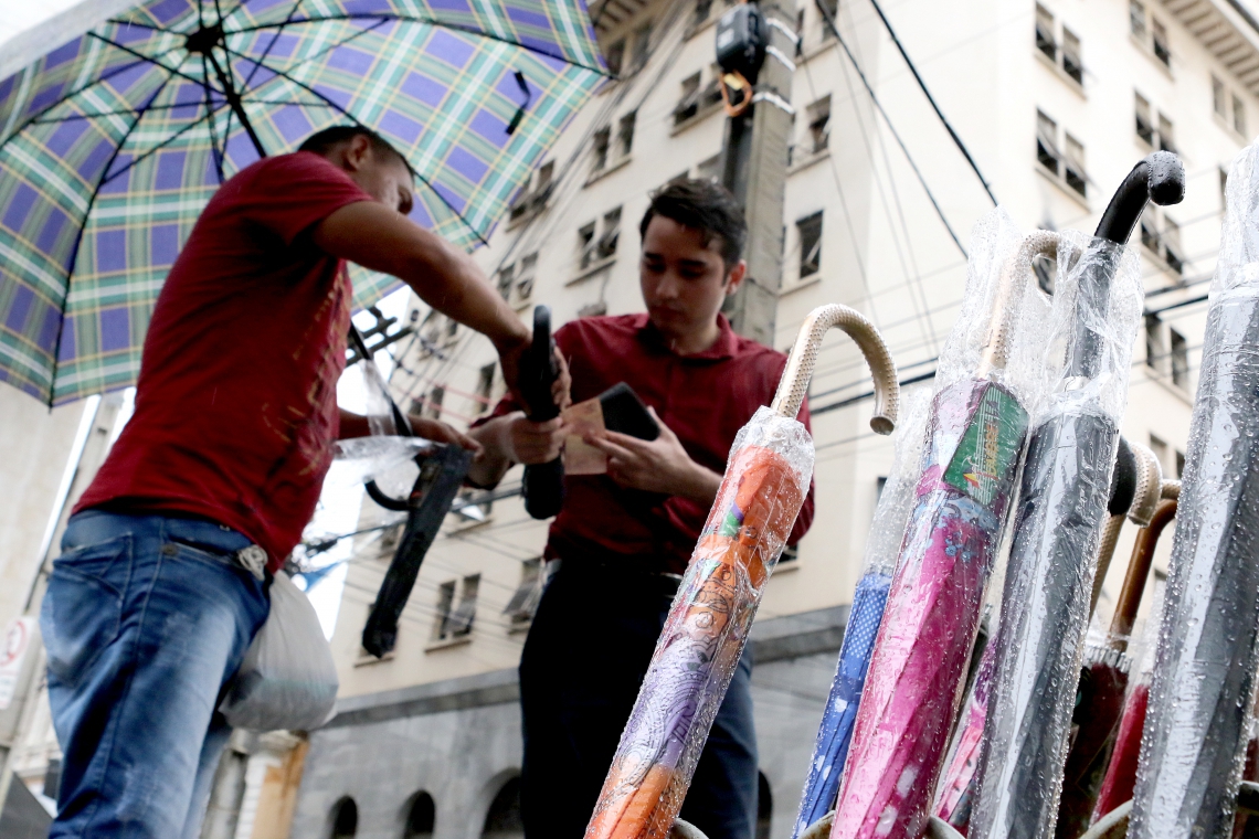 Na Praça do Ferreira, ambulantes aproveitaram a chuva para trocar a mercadoria diversa por guarda-chuvas. As lojas da rua Guilherme Rocha colocavam um balde com os objetos perto da entrada, facilitando a compra para quem anda apressado.