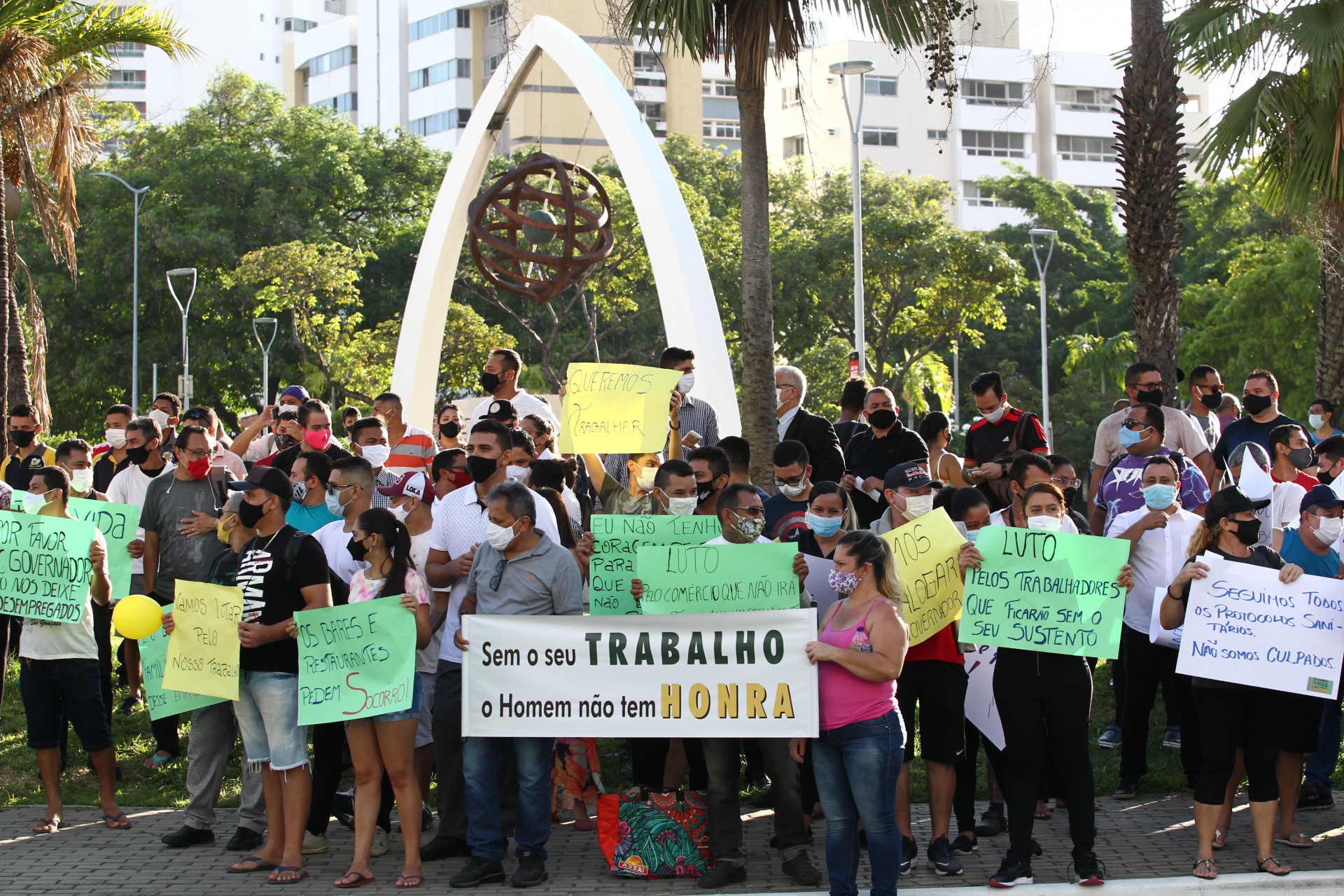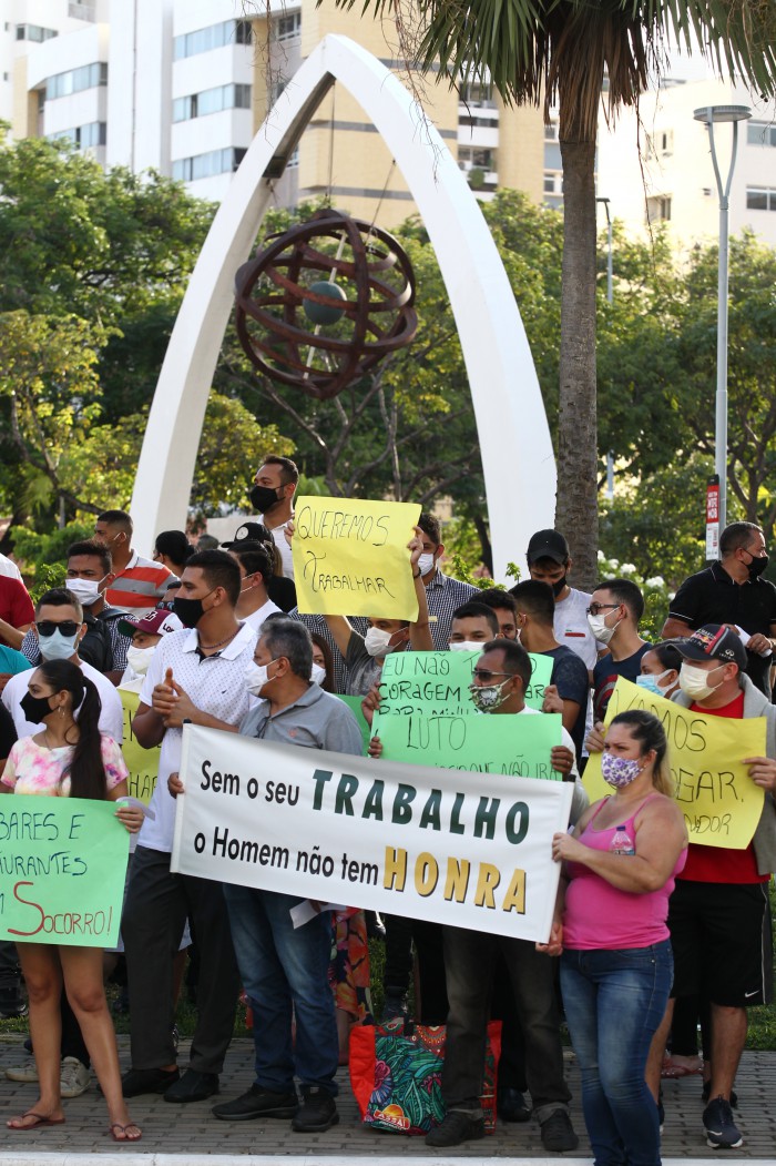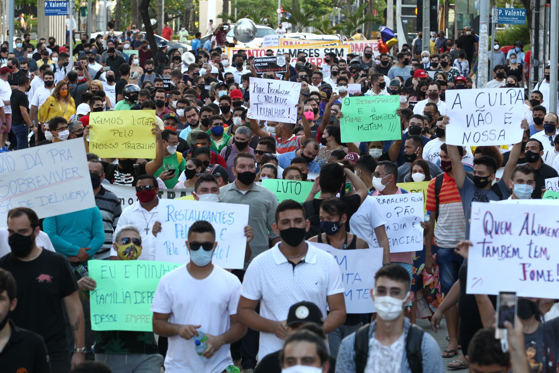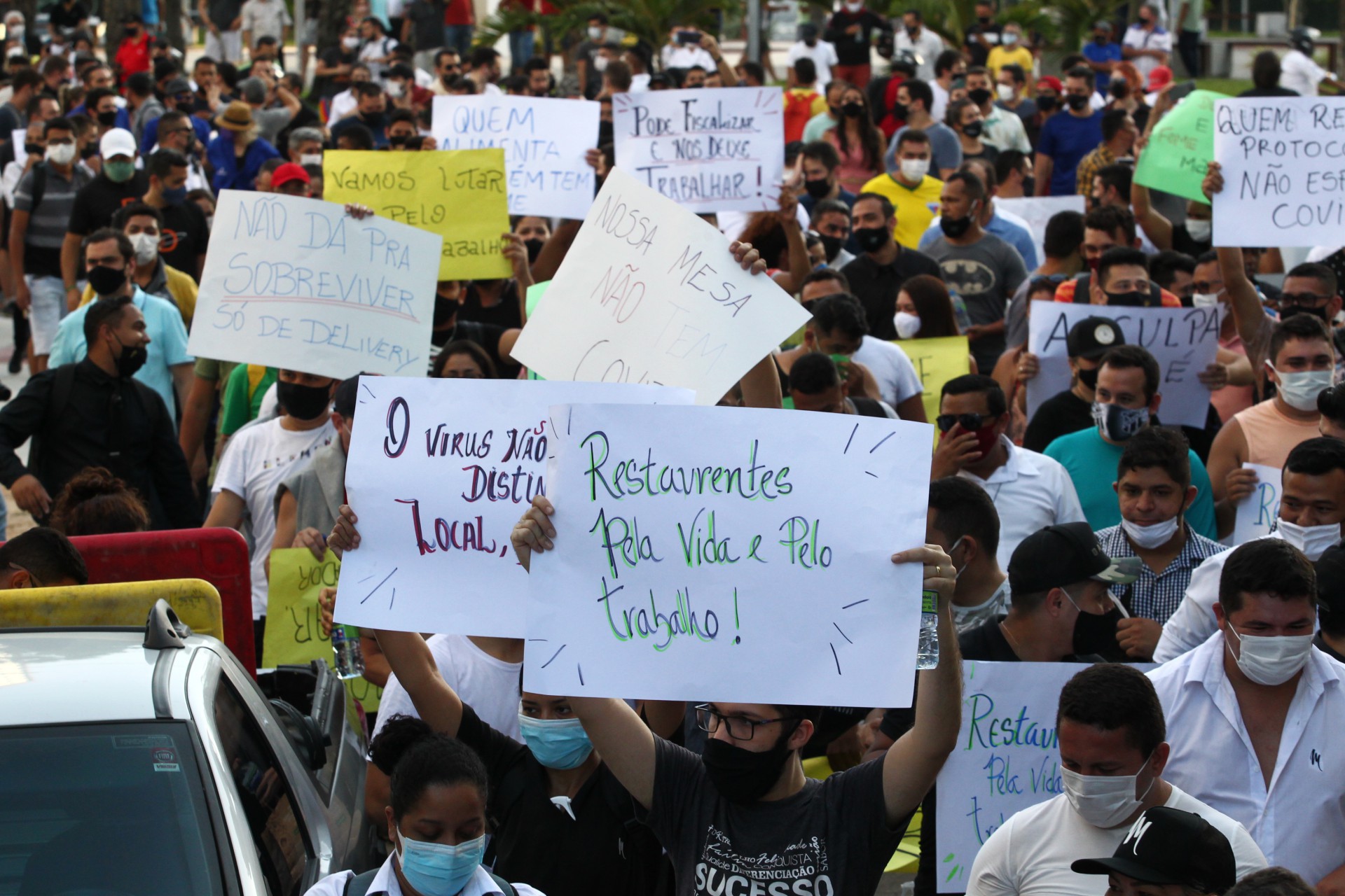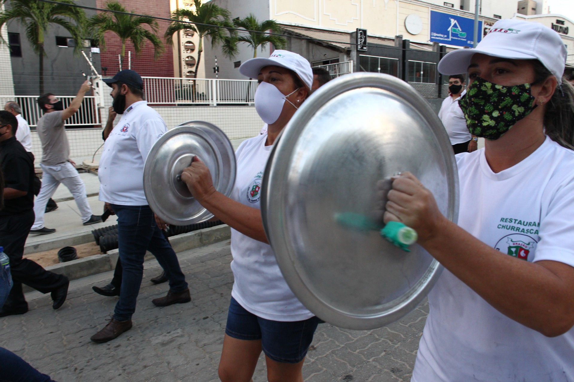 Veja imagens do protesto de trabalhadores e empresários de restaurantes em Fortaleza