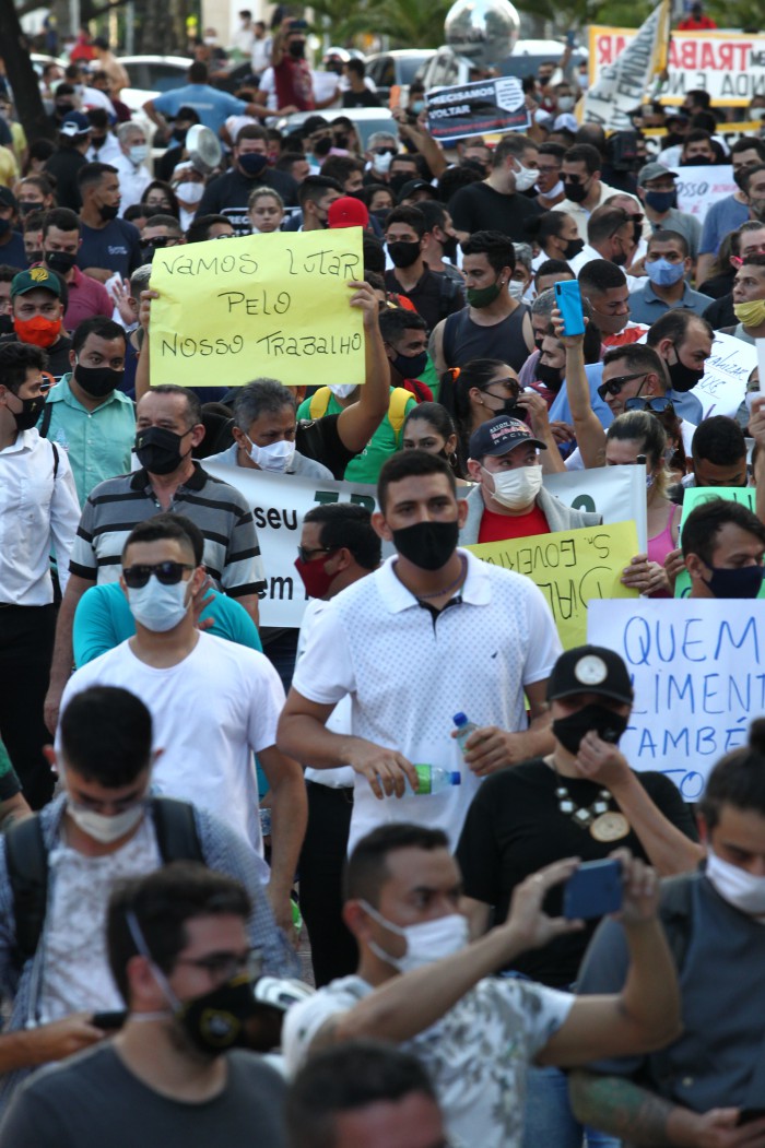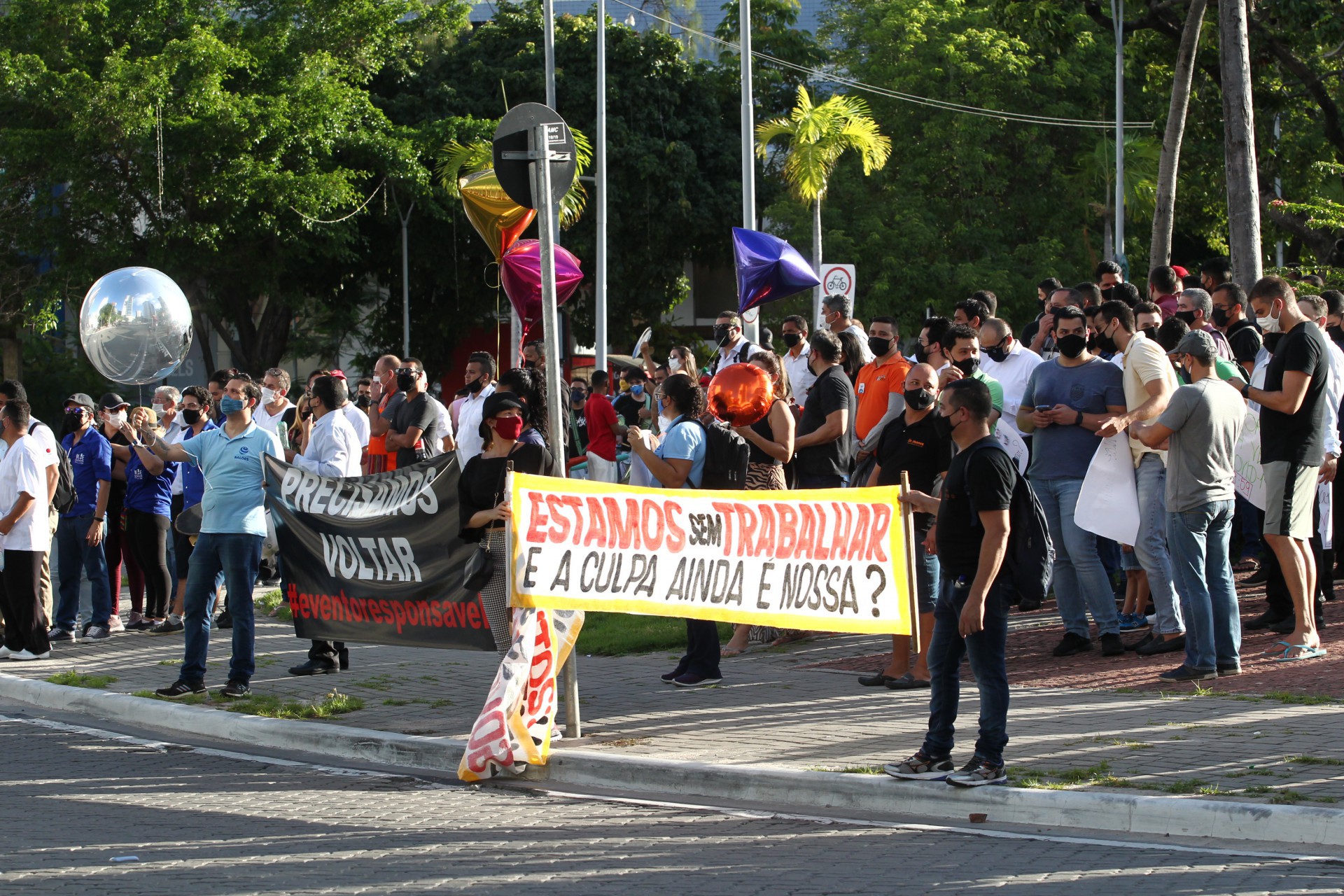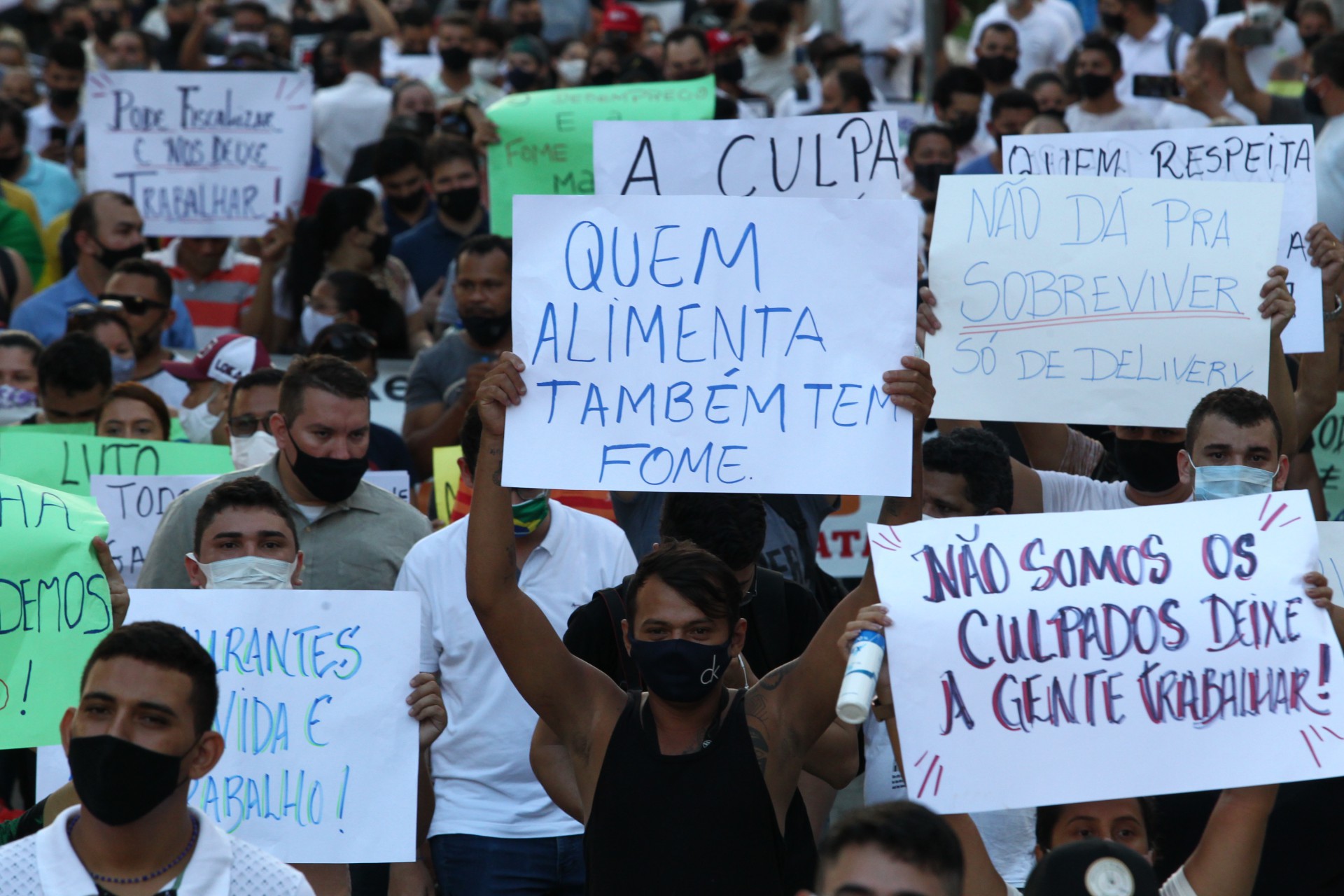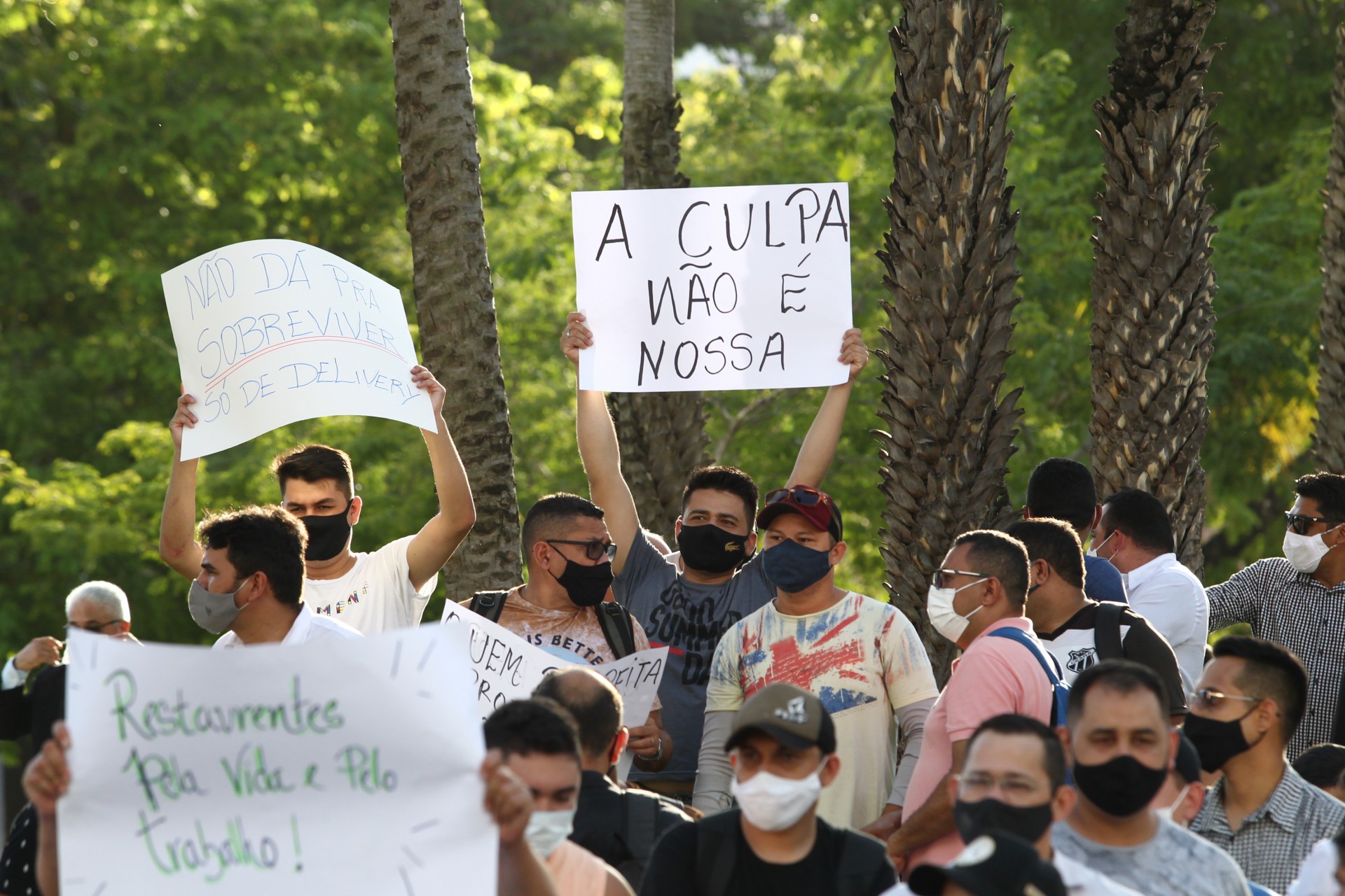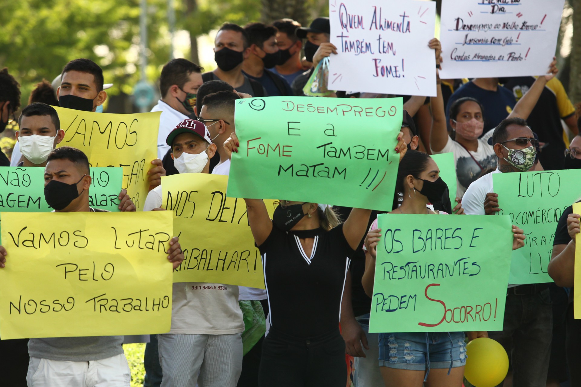 Veja imagens do protesto de trabalhadores e empresários de restaurantes em Fortaleza