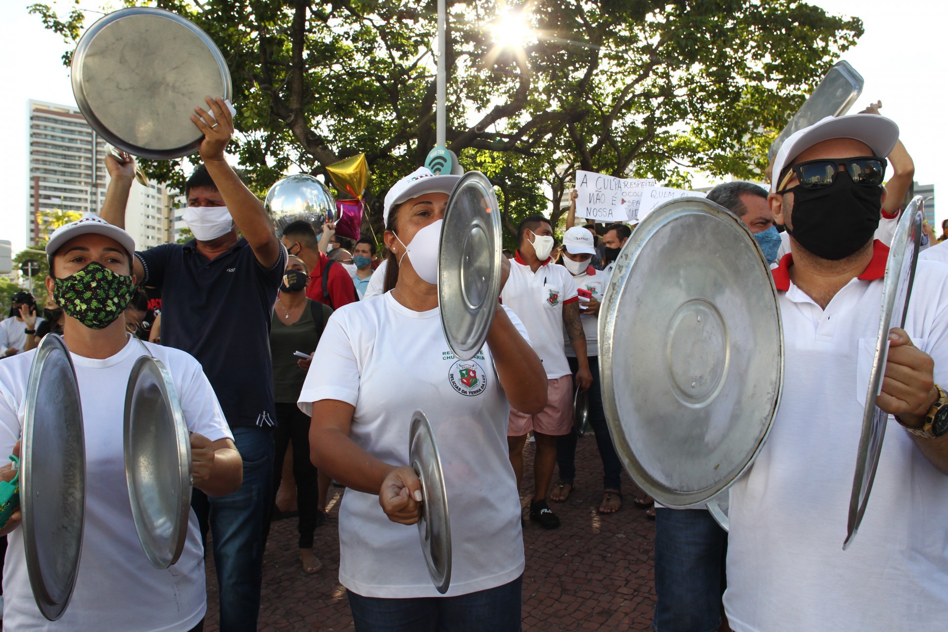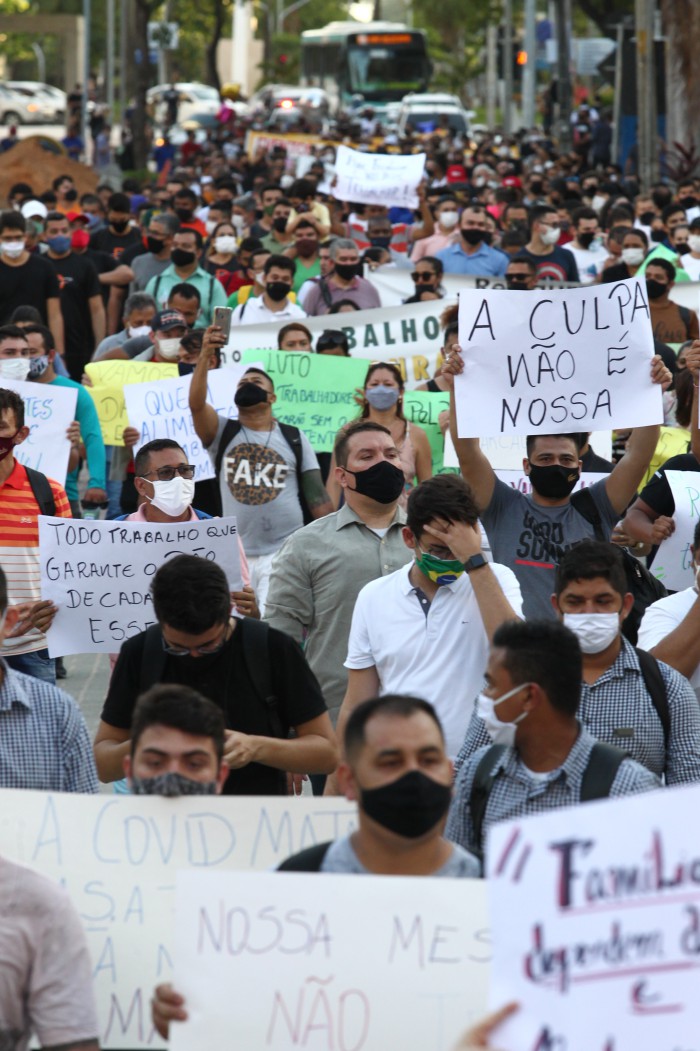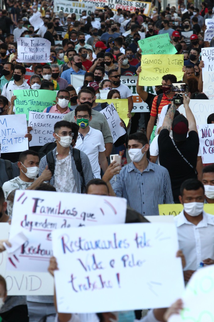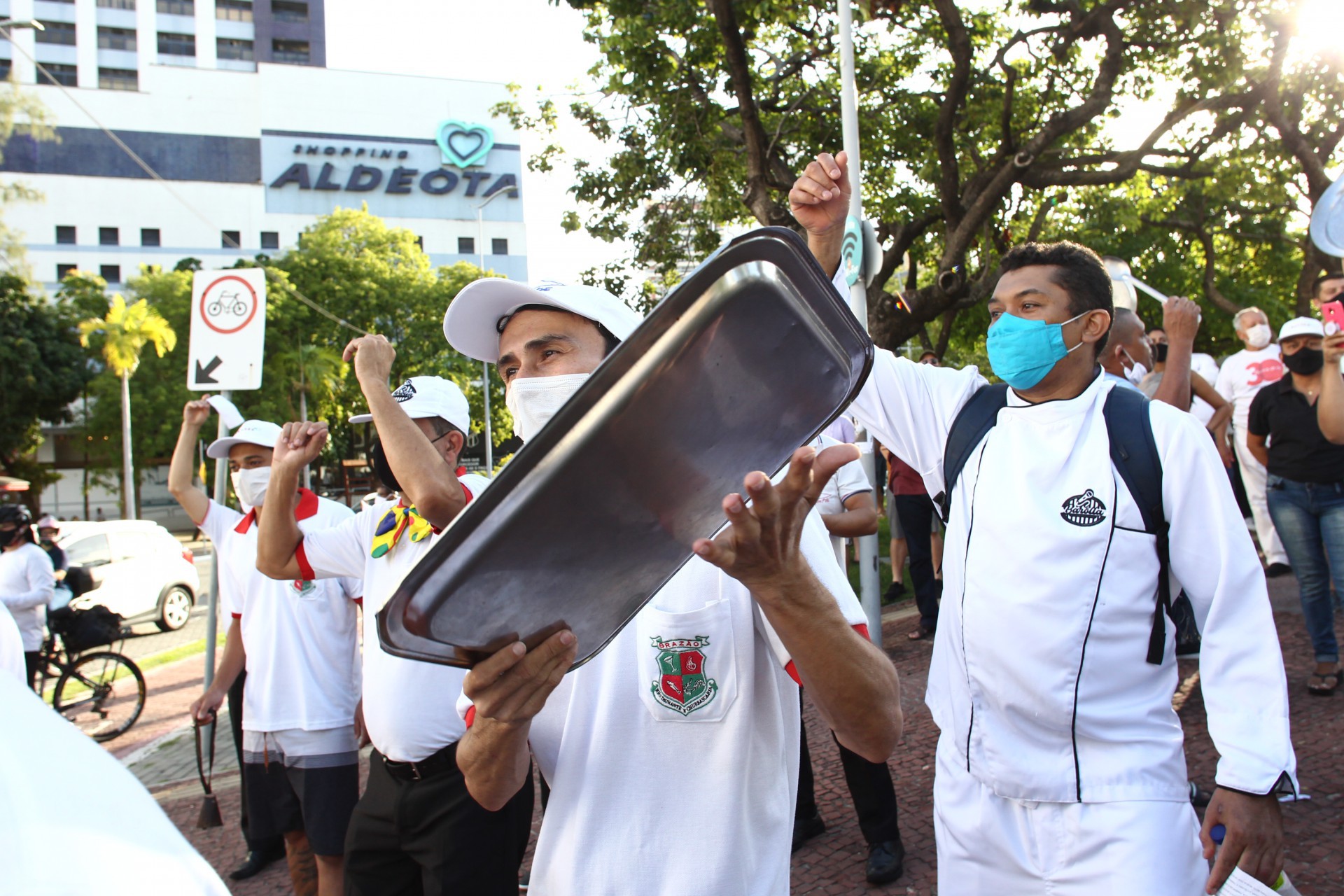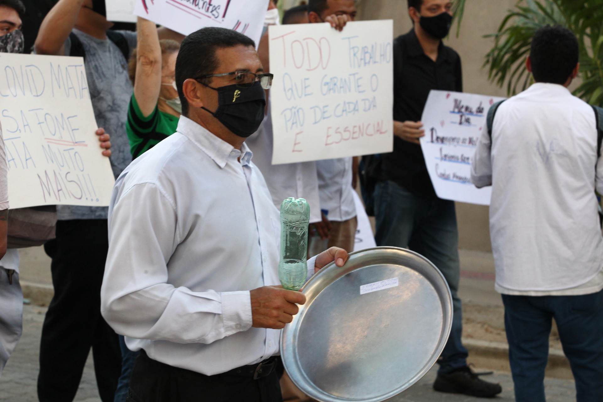 Veja imagens do protesto de trabalhadores e empresários de restaurantes em Fortaleza