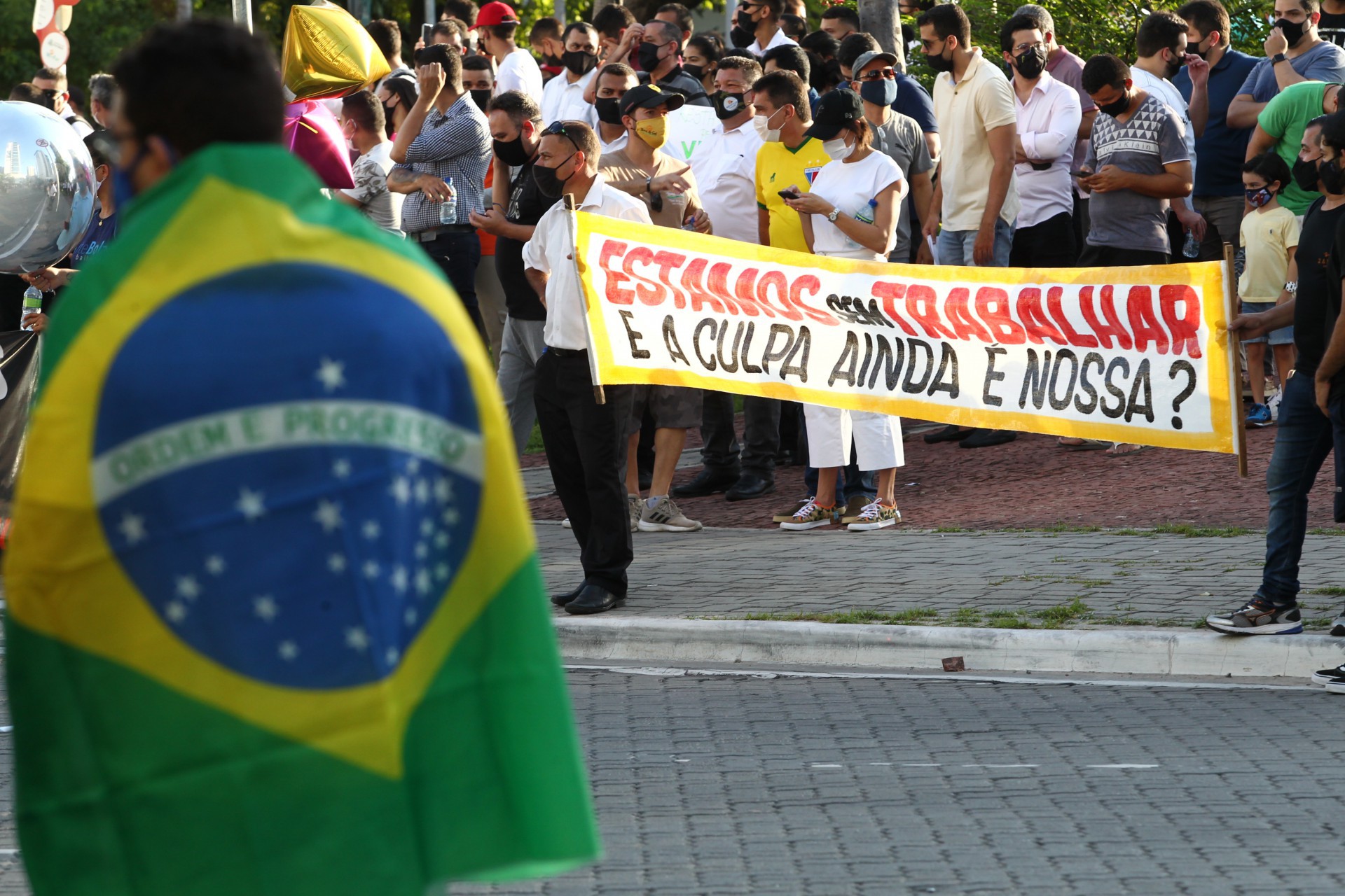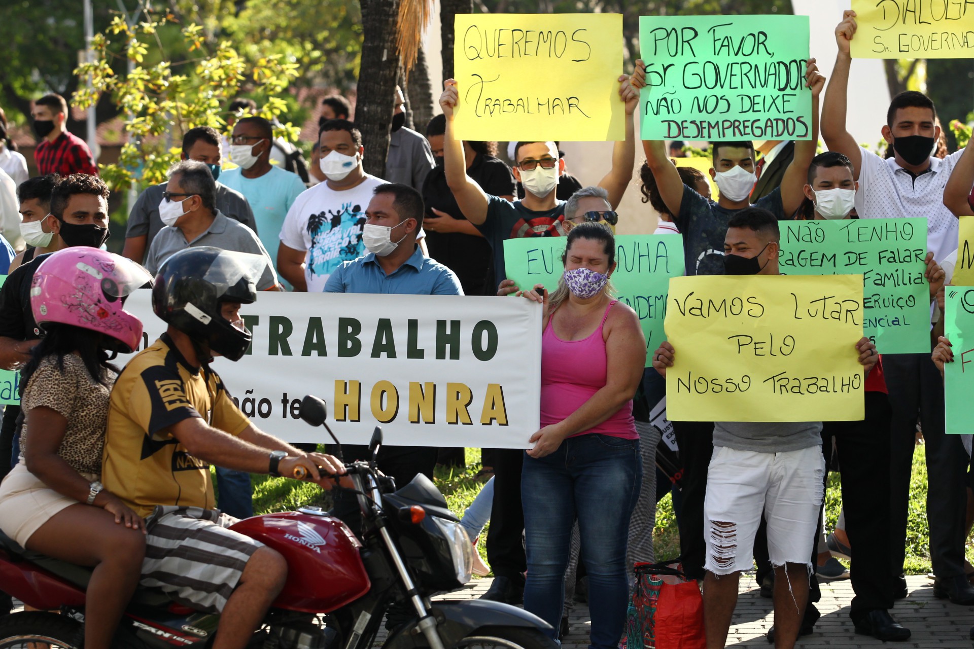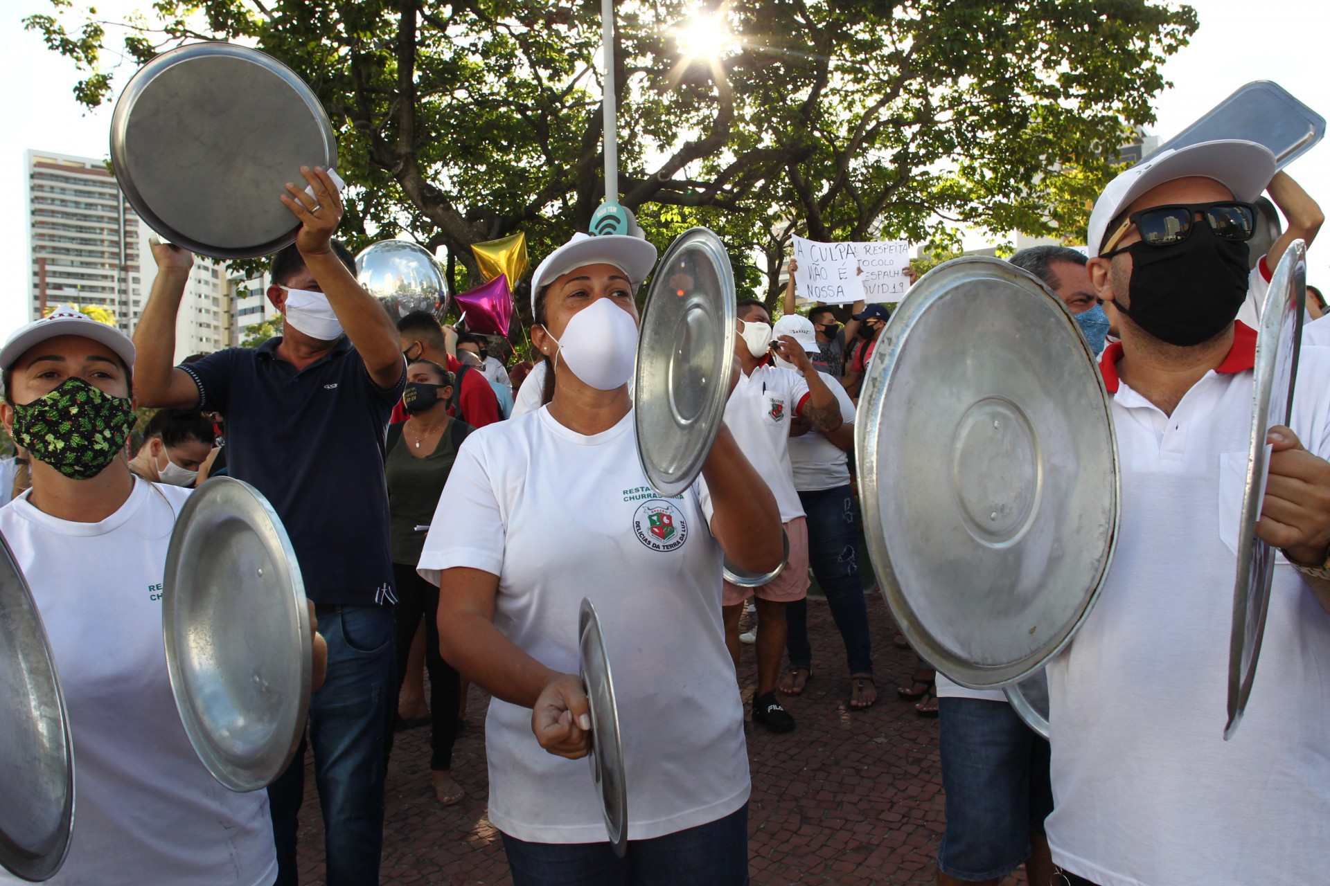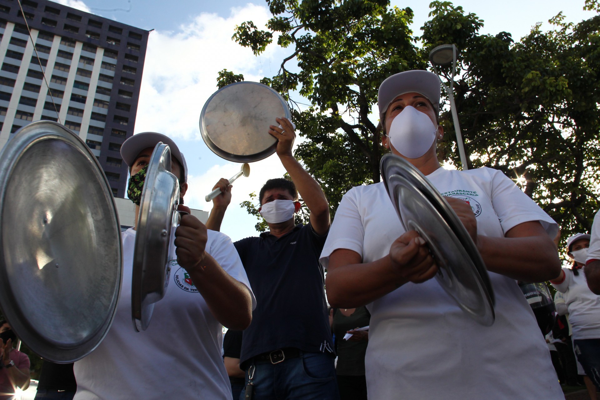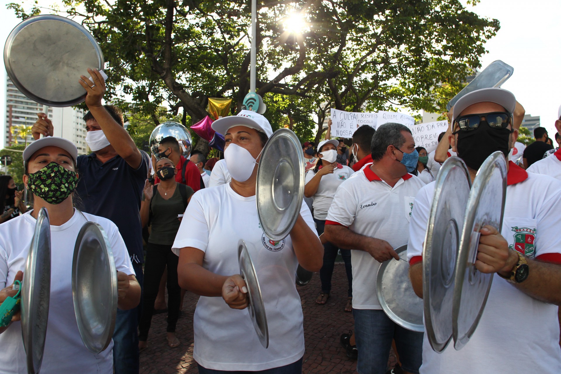 Veja imagens do protesto de trabalhadores e empresários de restaurantes em Fortaleza