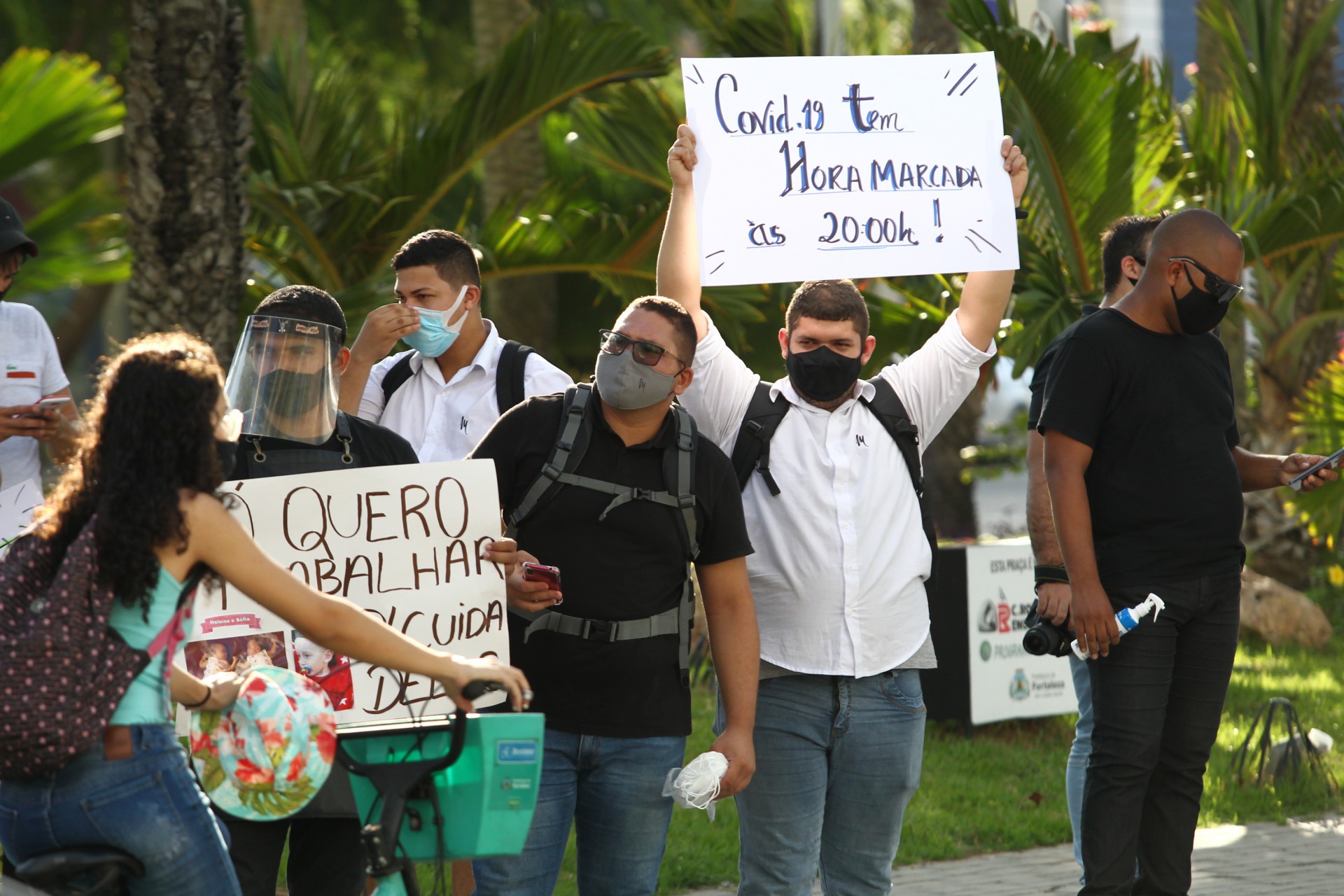 Após manifestação na quinta-feira, 4, integrantes do setor de alimentação realizam novo protesto desse vez com concentração na Praça Portugal, em Fortaleza contra a medida que reduziu os horários de funcionamento de bares, restaurantes e barracas de praia. O cortejo segue até a Beira Mar. O protesto conta com forte articulação da Associação Brasileira de Bares e Restaurantes do Ceará (Abrasel-CE).