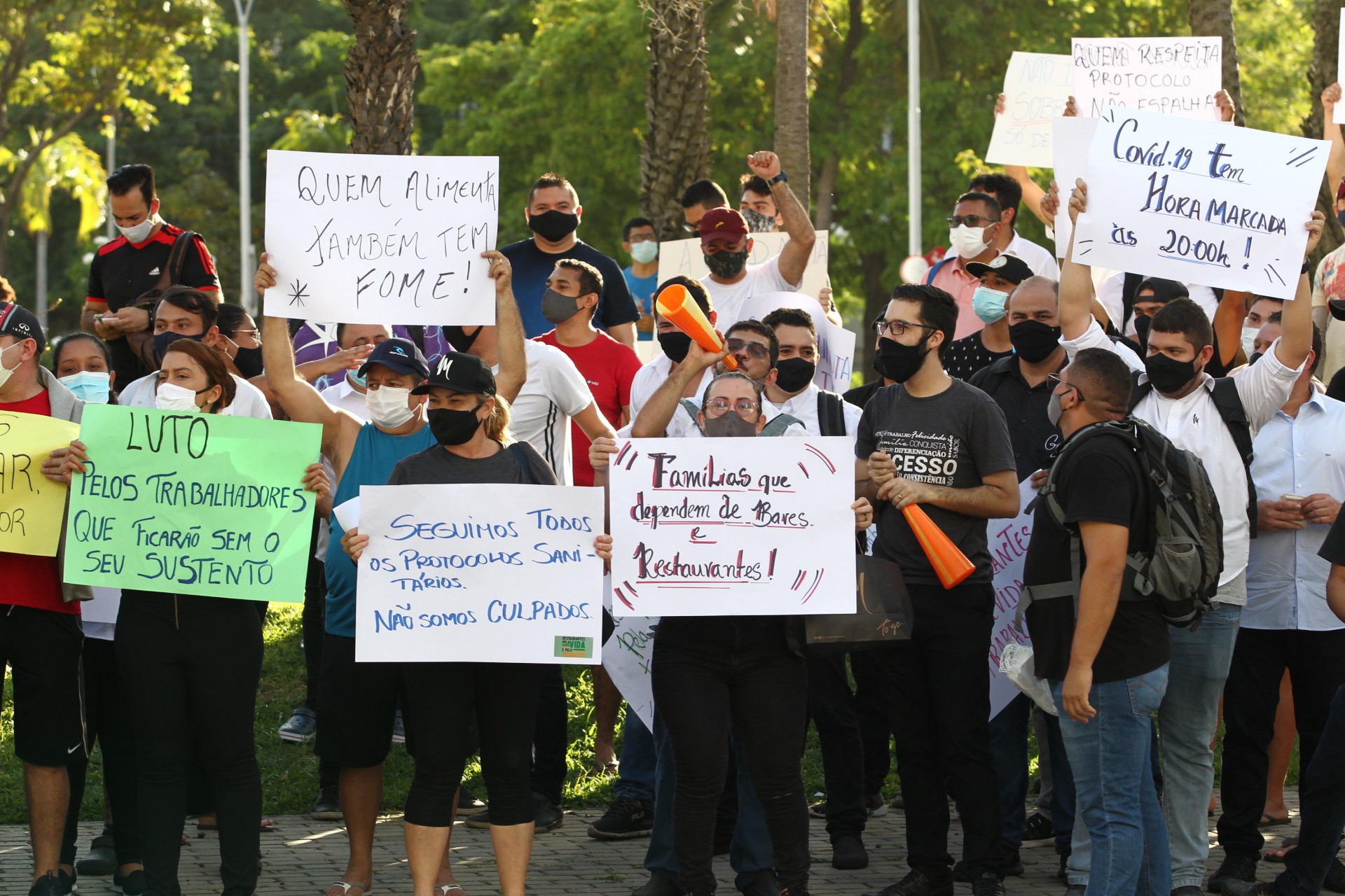 + Setor de bares e restaurantes realiza protesto contra redução de horário de funcionamento