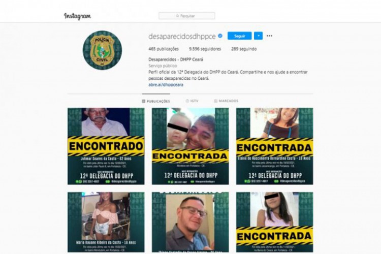 Um homem de 62 anos, que estava desaparecido desde o último dia 13 de março, foi encontrado na manhã desta segunda-feira, 22. Ele foi identificado por populares graças à divulgação de uma foto no Instagram @desaparecidosdhppce, perfil mantido pela 12ª Delegacia do Departamento de Homicídios e Proteção à Pessoa (DHPP) da Polícia Civil do Estado do Ceará (PCCE). O homem está bem e já se encontra com os familiares.