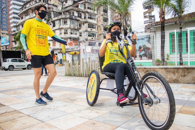 Para o pai de Francisco, a orientação foi utilizar a bicicleta The Duet, traduzida para o português como “o dueto”. O coordenador do curso de fisioterapia da faculdade Uninassau, Leonardo Freire Vasconcelos, explicou que a pessoa com mobilidade reduzida vai em uma cadeira montada na frente da bicicleta e um dos alunos do curso, treinados para o atendimento, vai pedalar e guiar o modal atrás.