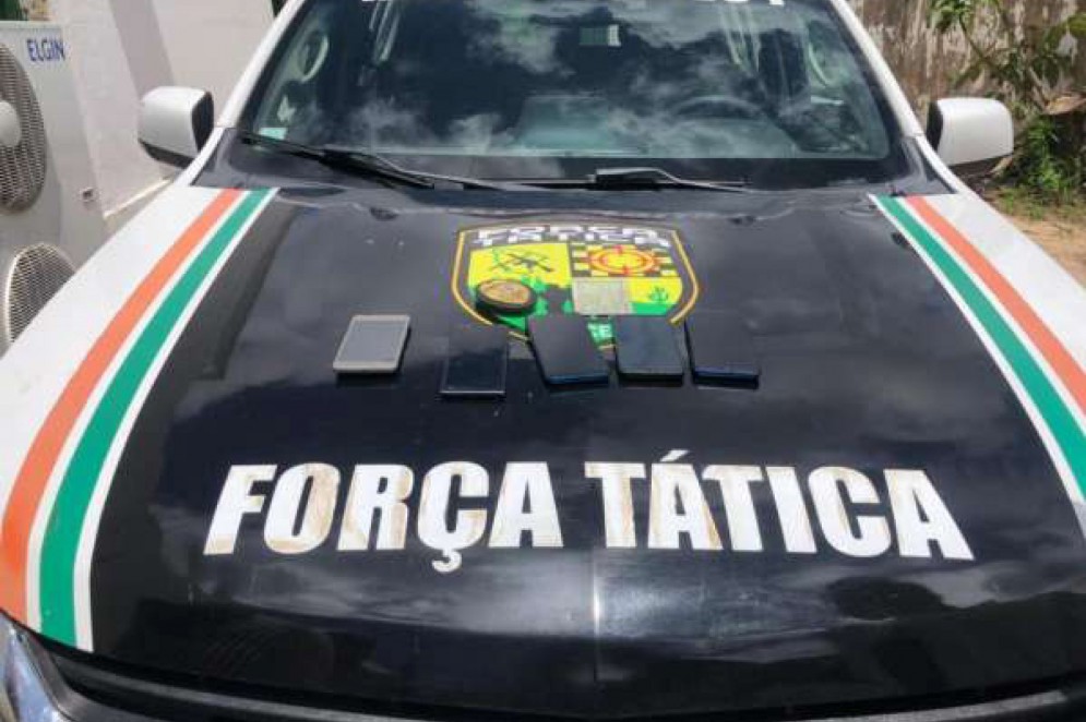 Com os dois foram apreendidos cinco aparelhos celulares, que seriam produtos de roubo
