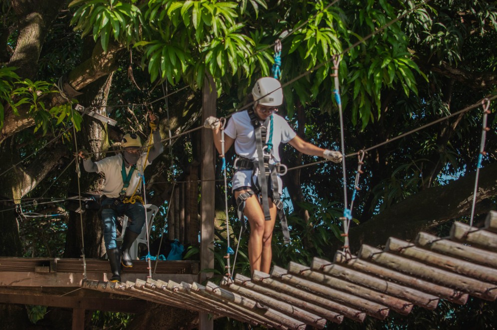Nos sábados e feriados, o Parque do Cocó promove um dia inteiro de arvorismo, esporte que envolve cruzar obstáculos suspensos em árvores