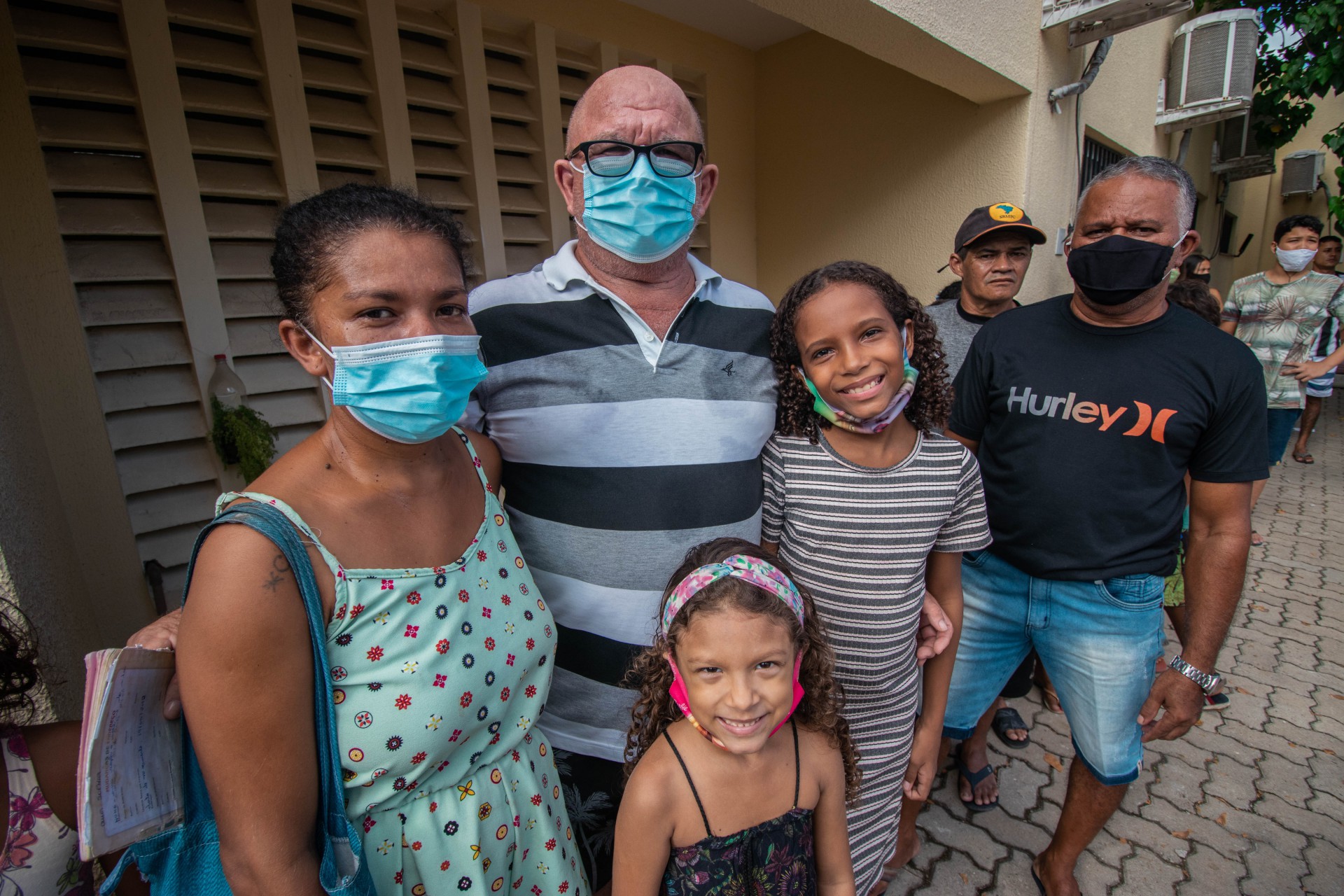 Os filhos e a sobrinha da dona de casa Francisca Liliane, 32, fazem parte desses dois casos. A caçula, Luna Blenda, de 3 anos, foi levada pela mãe para receber as vacinas contra sarampo e influenza. Já os dois filhos mais velhos, Laydiane, 11, e Francisco Willien Berg, 7, foram tomar a primeira dose da vacina contra a Covid-19, enquanto a prima, Riane Nunes, 12, estava na fila para receber a segunda dose.