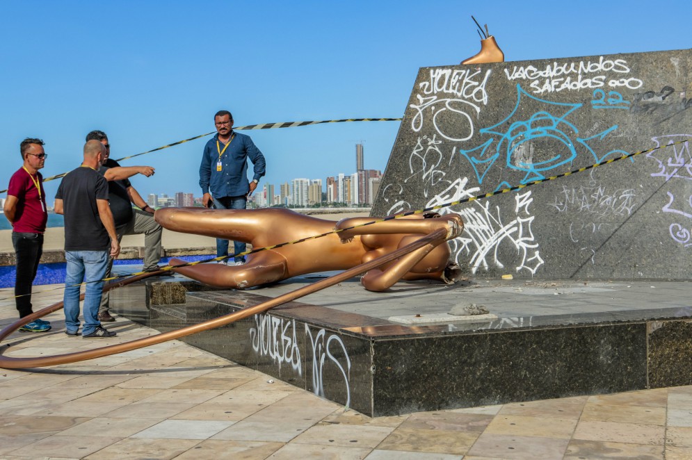 "Estrondo forte": testemunhas relatam momento da queda da estátua de Iracema