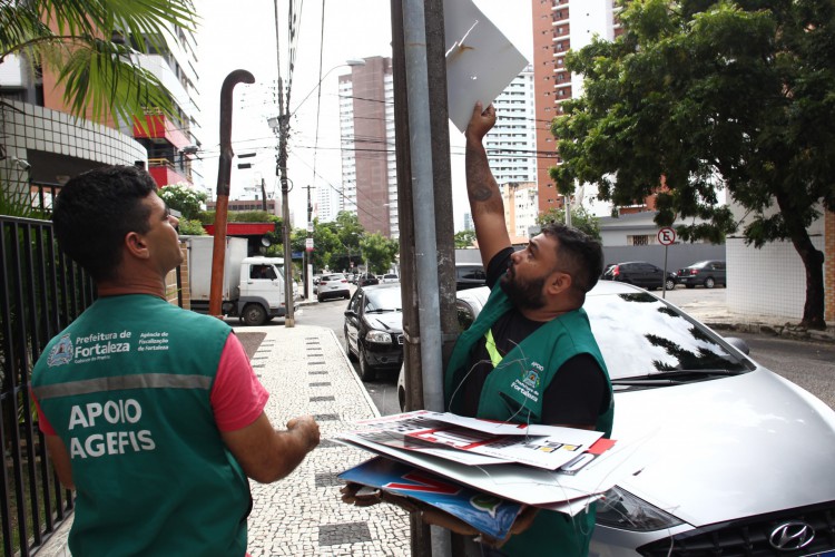 Na manhã de terça-feira, 21, O POVO acompanhou a Agefis em uma ação contra poluição visual, no bairro Dionísio Torres. Os agentes removeram faixas, anúncios e banners dispostos de forma irregular em postes de iluminação, árvores e nos logradouros públicos. A Agefis também realizou ações educativas como a entrega cartilhas informativas sobre como utilizar a publicidade visual de forma correta.
