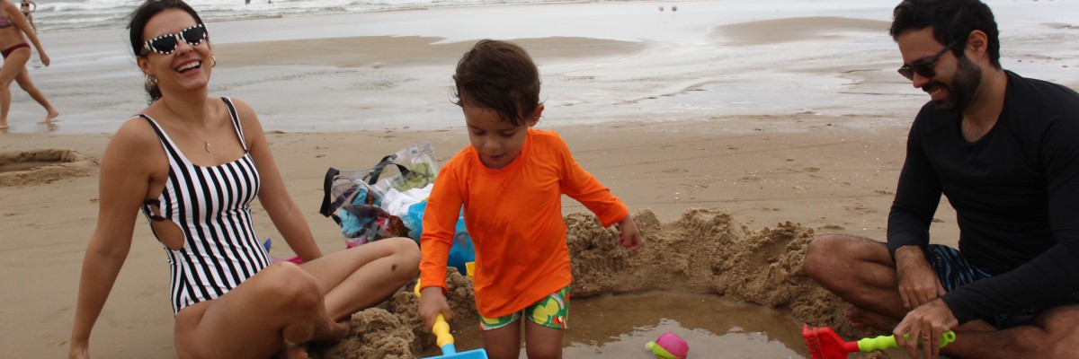 Débora Bandeira, empresária, levou o filho Arthur, de 2 anos, para um banho de mar. Ir à praia já é costume rotineiro, seja na Praia do Futuro, Beira Mar ou Porto das Dunas. E, mesmo ainda tão pequeno, Arthur já está curtindo as férias. “A praia é um programa muito bom para ele sair de casa, sair das telas. Viemos brincar um pouco juntos”, afirma a mãe.