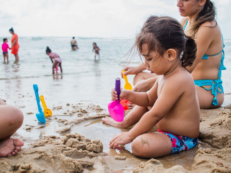Piscininhas são opção para brincar com as crianças na água do mar sem risco de ondas fortes