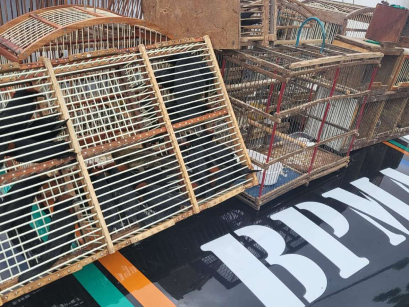 Com o homem, foram apreendidos três pássaros silvestres Sibite, um Bigodeiro, um Canário da Terra, um pássaro de espécie não identificada, três pássaros Abre Fecha, quatro Galos de Campina, sete Golinhas e 24 pássaros Papa Arroz, além de sete caixas de transporte e oito gaiolas.
