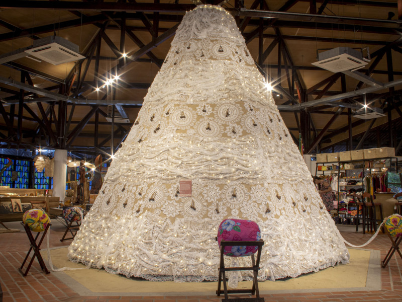 A árvore de Natal da Central de Artesanato do Ceará (CeArt), em Fortaleza, realizou uma homenagem às rendeiras do Ceará neste ano. Instalada na loja da galeria Mestre Noza da CeArt, na Praça Luíza Távora, o símbolo natalino ganha destaque pelo revestimento em renda de . A árvore foi produzida pelas rendeiras do Centro de Rendeiras da Prainha e elaborada pelo designer da CeArt, Patrício Barros.