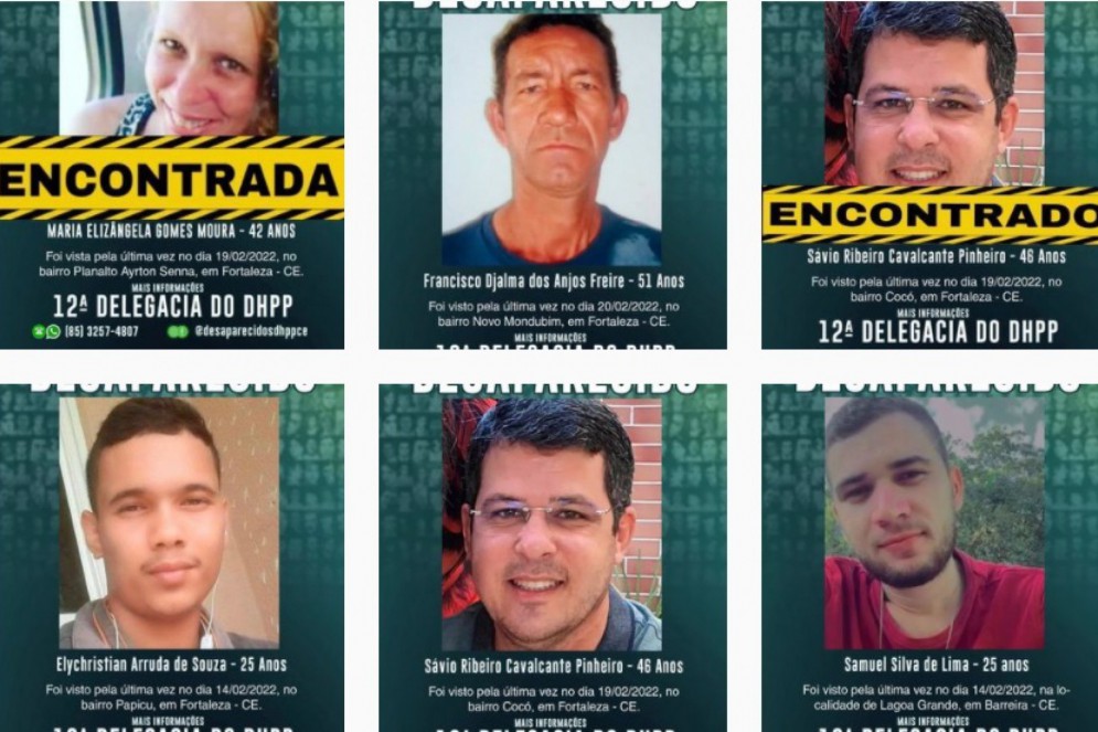 O balanço ainda mostra que 62 pessoas desaparecidas foram encontradas mortas na capital cearense. O trabalho de buscas foi realizado pela Polícia Civil do Ceará, por meio da 12ª Delegacia do Departamento de Homicídios e Proteção à Pessoa (12ª DHPP).