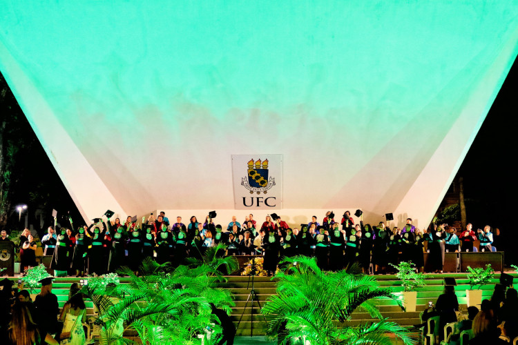 O reitor da universidade, Custódio Almeida, celebrou o momento com os formandos e destacou a importância da cerimônia. "É um momento especial está com vocês na Concha Acústica da UFC. O dia é de festa e celebração. Essa solenidade de hoje representa muito mais do que um fechamento de mais um ciclo da educação, é mais do que uma aquisição de um diploma do ensino superior e a conquista de uma profissão", afirmou.