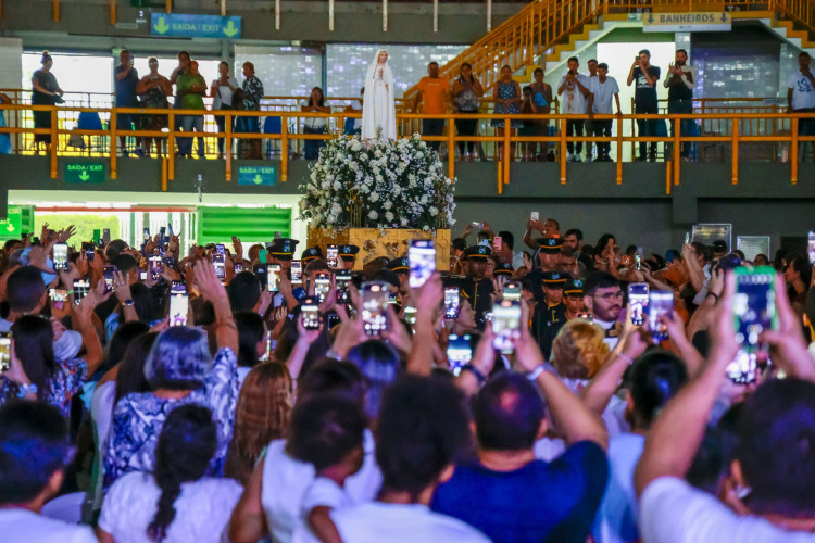 Imagem peregrina da Nossa Senhora de Fátima emociona fiéis no Ginásio Paulo Sarasate