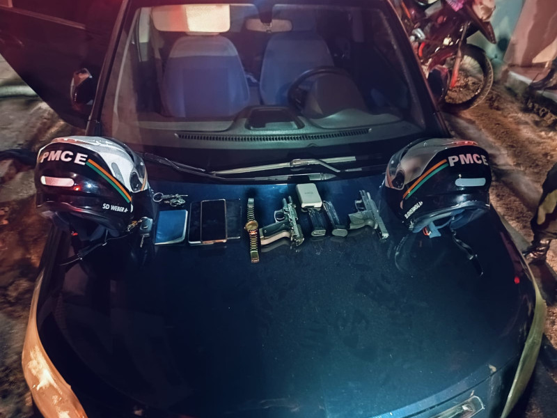Ainda de acordo com o registro da ocorrência, os criminosos não obedeceram a ordem de parada dos policiais e tentaram fugir. Os policiais, então, solicitaram apoio, capturando os suspeitos na rua Tabatinga. Foram ainda apreendidas duas pistolas, uma de calibre 9m e outra de calibre 380. O motorista foi libertado do porta-malas do veículo.