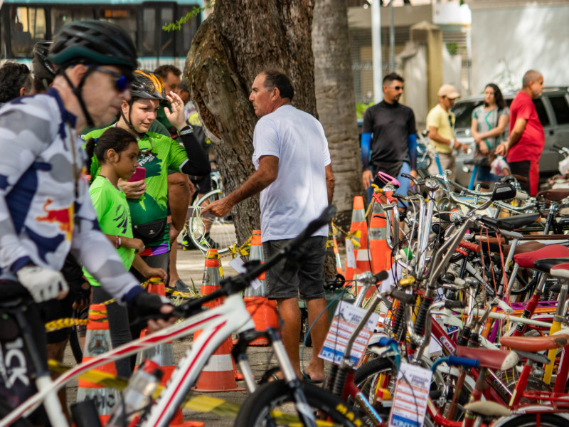 Além de apreciar e relembrar o passado, as pessoas presentes puderam vender e comprar modais. “Temos bicicletas de todos os tamanhos aqui hoje. Aro 10, 20, 26, 28… Trouxeram bicicletas de família, nunca restauradas”, conta João Júlio Sombra, de 62 anos, um dos três fundadores do evento.
