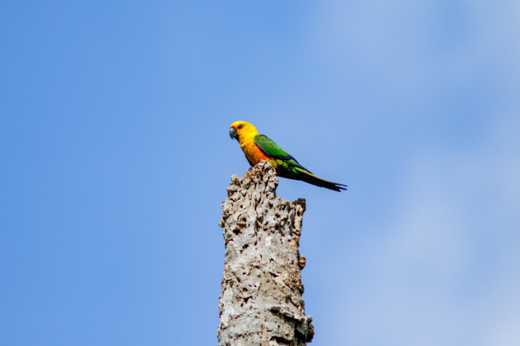A ave tem o canto como principal característica. Ela é bem barulhenta. O próprio nome científico, Aratinga jandaya, significa periquito barulhento em tupi. “Quem conhece o canto, consegue identificar de forma perfeita: ‘tem jandaia aqui perto’”, destaca.