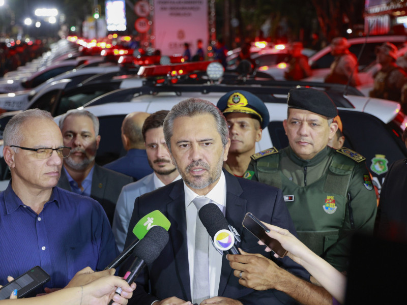 Evento de entrega aconteceu na Praça Nossa Senhora de Fátima, em Fortaleza, e contou com a presença do governador Elmano de Freitas (PT), do titular da SSPDS, Roberto de Sá, e demais titulares das instituições que compõem a segurança estadual. Solenidade contou ainda com a participação do pároco da Igreja de Fátima, padre Ivan, que abençoou os veículos.