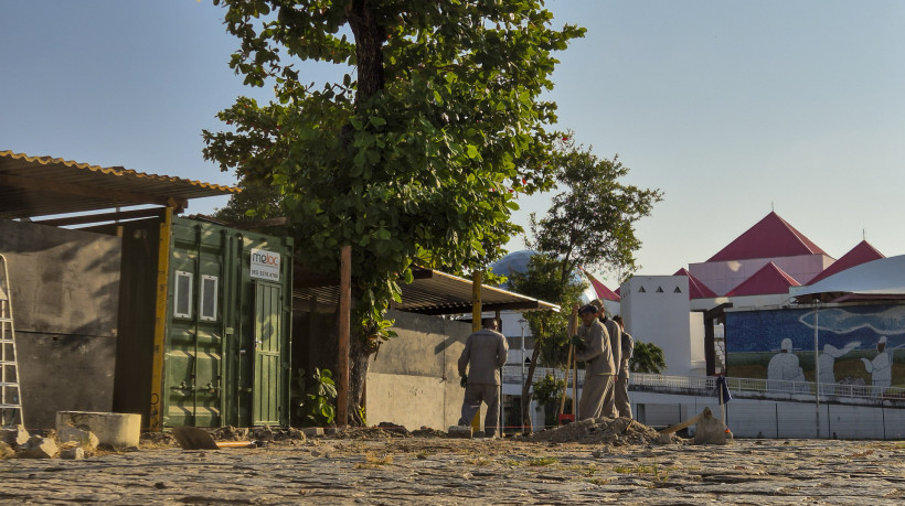 “A obra de reestruturação urbanística da Praça Almirante Saldanha, que cerca o Centro Dragão do Mar de Arte e Cultura, no bairro Praia de Iracema, em Fortaleza, segue normalmente, sem intercorrências e dentro do planejamento da Superintendência de Obras Públicas (SOP)”, informou a pasta.