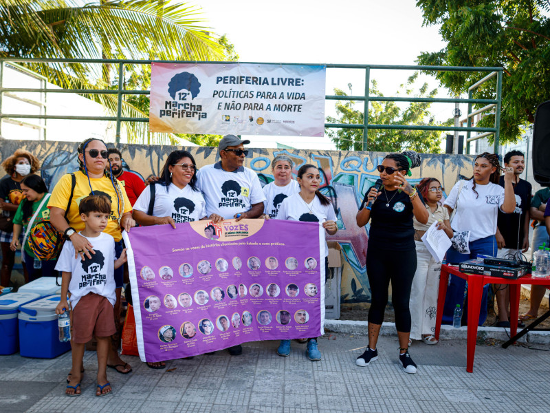 A 12ª edição da Marcha da Periferia, realizada neste sábado, 30, reuniu dezenas de movimentos sociais, coletivos e organizações na Praça Santa Cecília, no bairro Bom Jardim, em Fortaleza. Com o tema "Periferia Livre: Políticas Para a Vida e Não Para a Morte", o evento denunciou práticas consideradas pelos participantes como repressivas e criminalizadoras nas políticas de segurança pública para as periferias do Ceará.