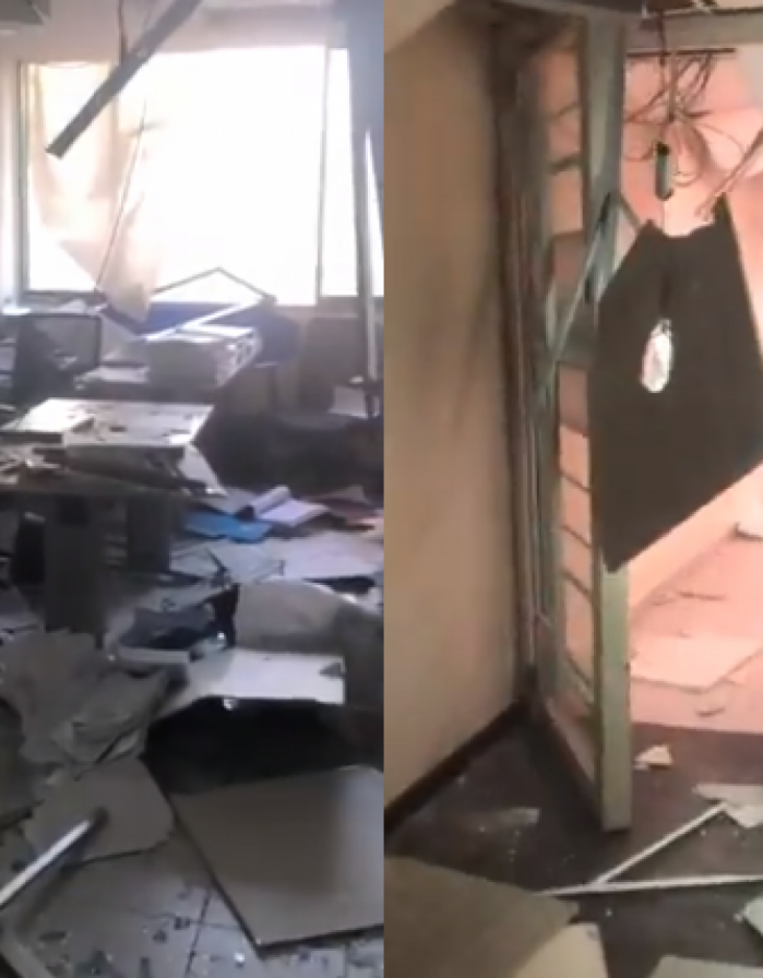 No vídeo é possível ver vários escombros e perceber um alarme tocando, além de ouvir a pessoa que grava perguntar se outra ao lado está bem.