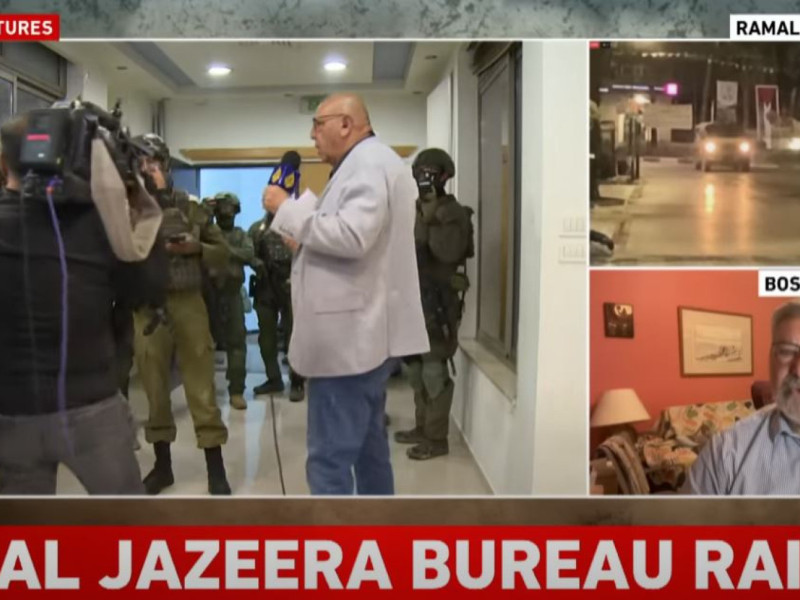 A emissora de televisão catariana Al Jazeera mostrou ao vivo neste sábado, 21, à noite, quando tropas de Israel invadiram seu escritório e ordenaram o fechamento da emissora no país. A rede de TV é a maior emissora do mundo em língua árabe e é financiada pelo governo do Catar.