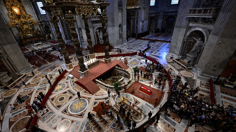 A Basílica de São Pedro permaneceu aberta para receber fiéis até as 5h30 (0h30, em Brasília) de hoje, quando ficou fechada por apenas uma hora e meia e voltou a ser aberta para o último dia de velório aberto às 7h (2h, em Brasília).