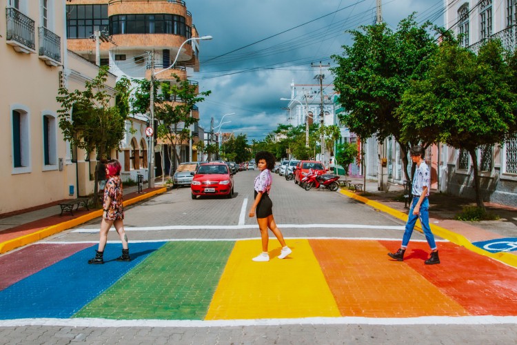 Nesse mês, as faixas de pedestre localizadas no cruzamento da Avenida Dom José com a Rua Deolindo Barreto, centro de Sobral, foram personalizadas com as cores da bandeira LGBTQIA+. A ação faz parte de um projeto do Mães pela Diversidade, em parceria com a marca T-Shirt in Box, e foi desenvolvida junto à Prefeitura de Sobral, por meio das secretarias da Infraestrutura e do Trânsito e Transporte.
